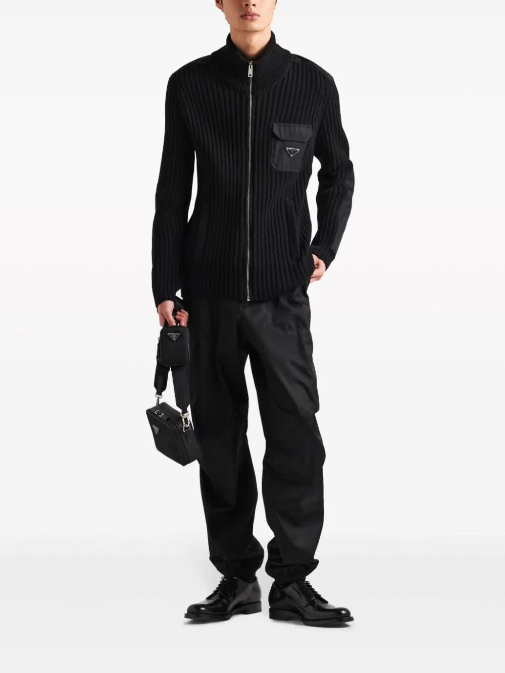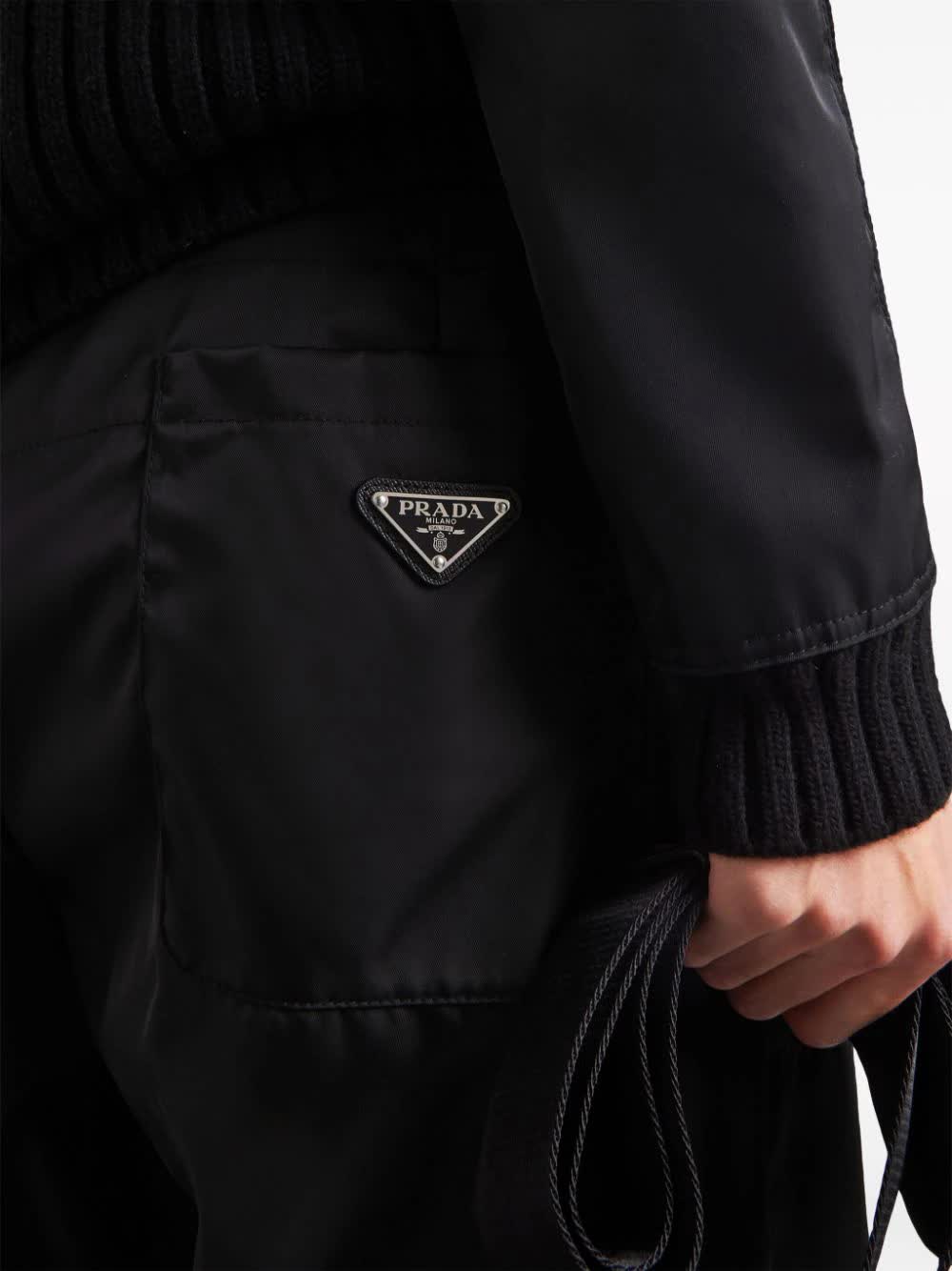 Prada presents these trousers made in the innovative Re-Nylon with triangle logo in enameled metal on the back.