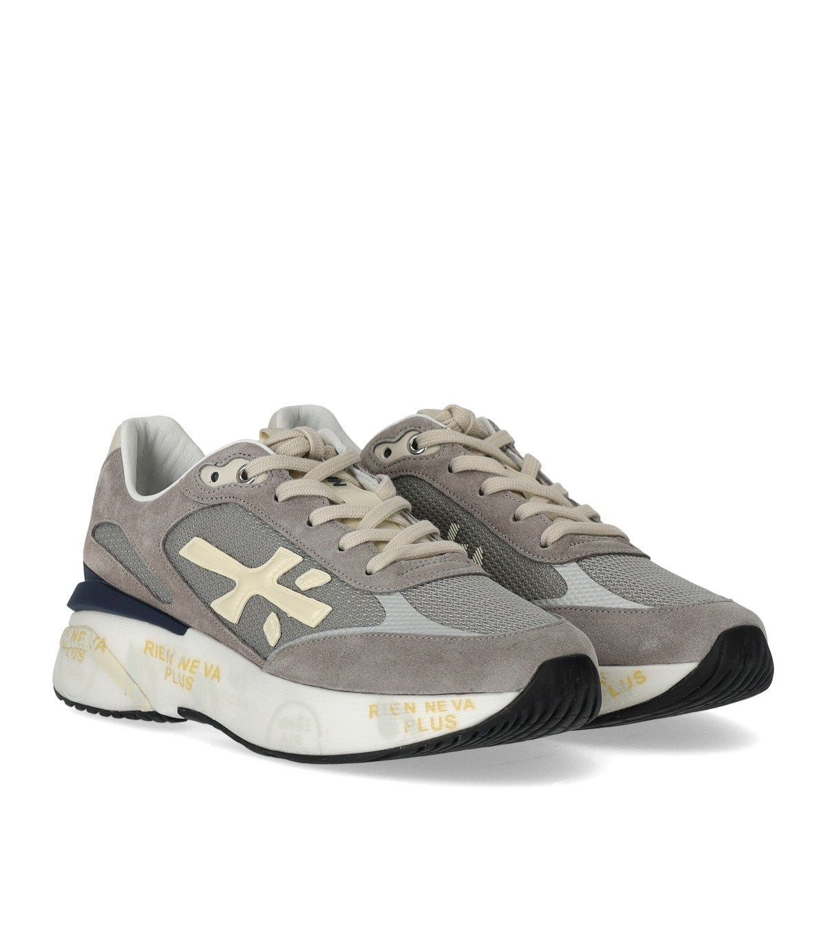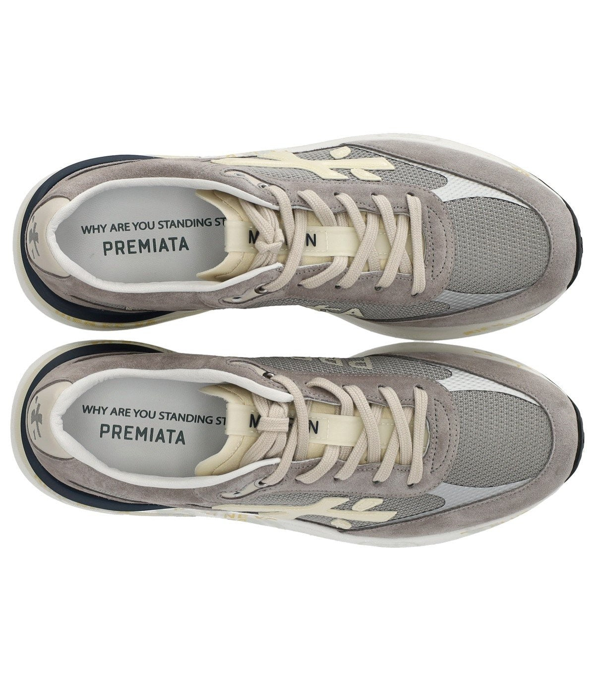 Moerun 6727 sneaker by Premiata made in suede and technical fabric in shades of grey. Reflective details, logo, and contrasting heel. Soft leather lining and insole. Rubber sole with logo prints, height 5.5 cm.