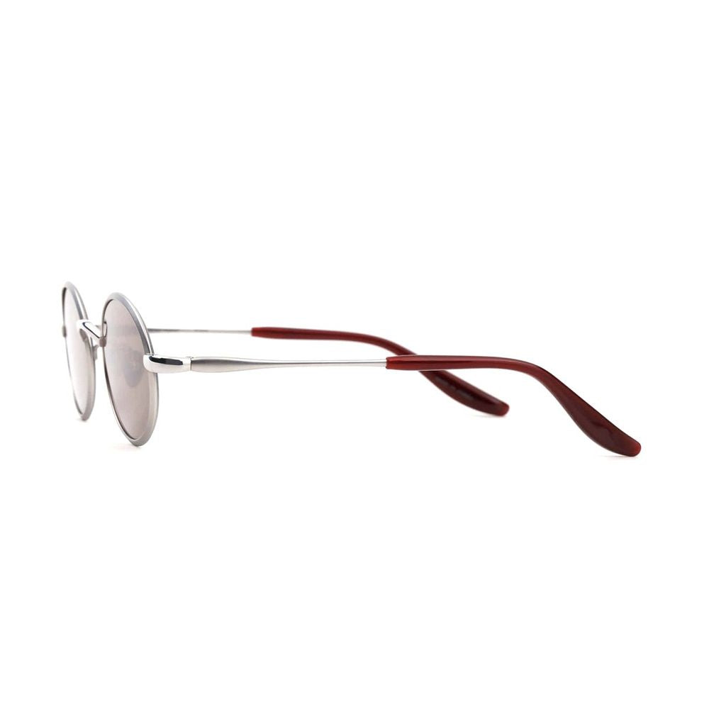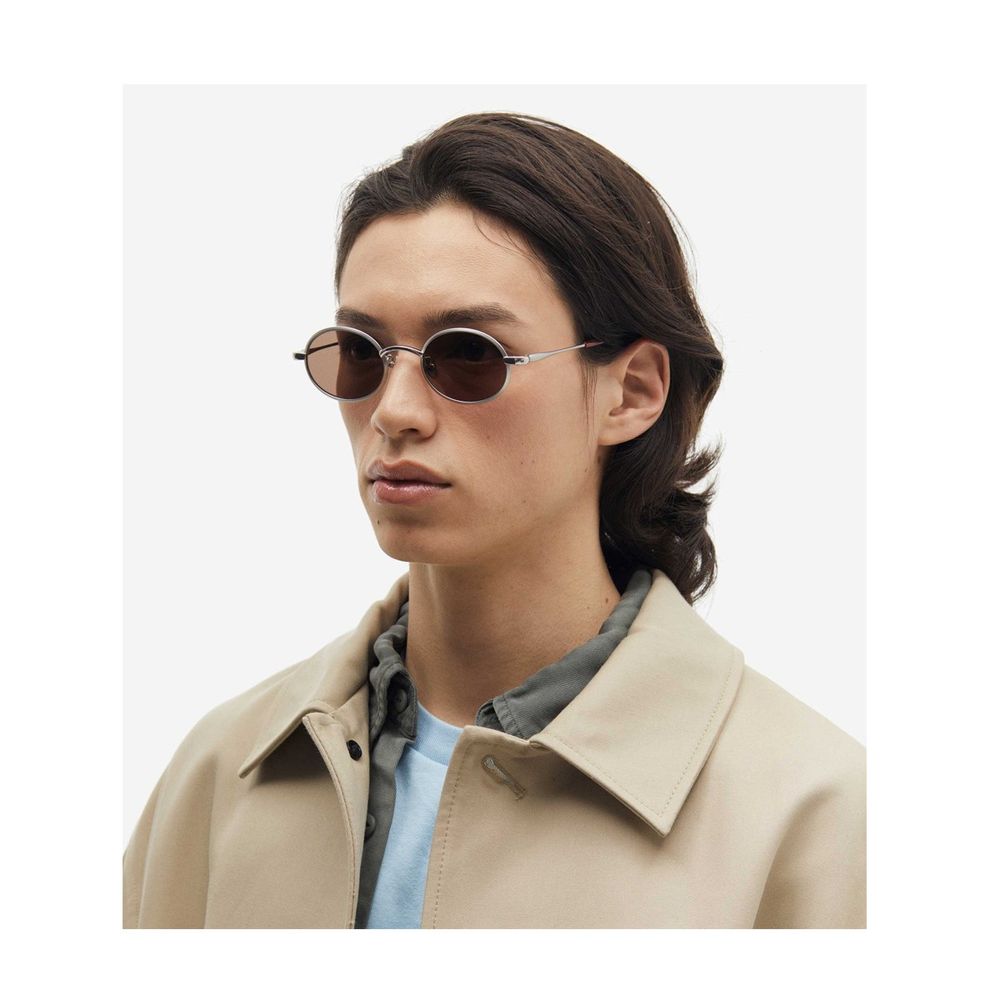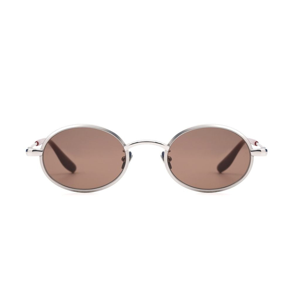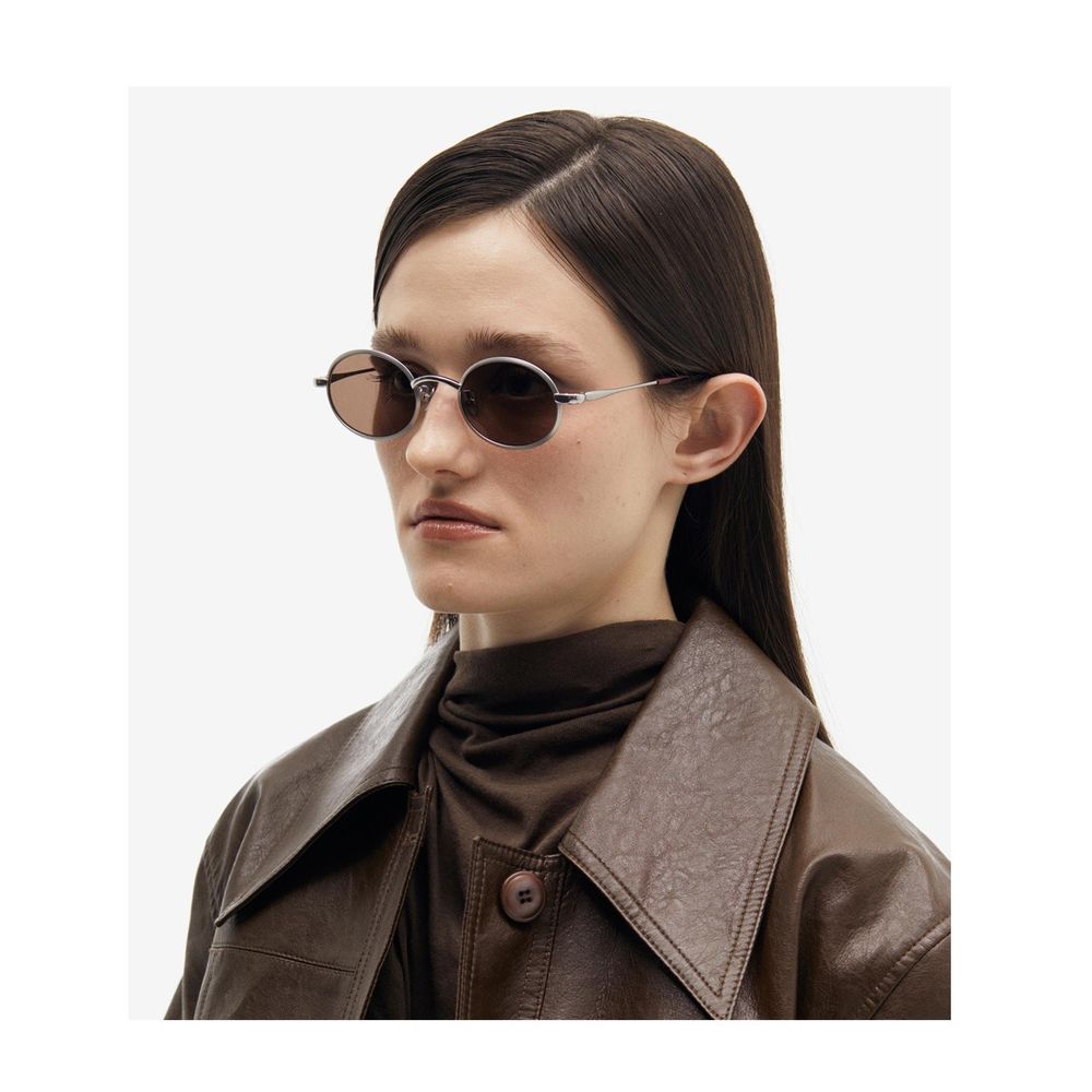 PROJEKT PRODUKT is a Korean brand with a modern, minimal, and elegant design, born from the fusion of customer needs and designer vision. Using high-quality materials, it launches new collections each year that reflect its sophisticated and exclusive essence.The CLCC7 sunglasses model stands out for its iconic design, featuring unique and structured lines. The oval-shaped frame, crafted from silver titanium, is paired with brown-toned lenses, creating a perfect balance between elegance and modernity. The voluminous metal rims and refined end-pieces add a touch of originality, enhancing every detail with sophistication.