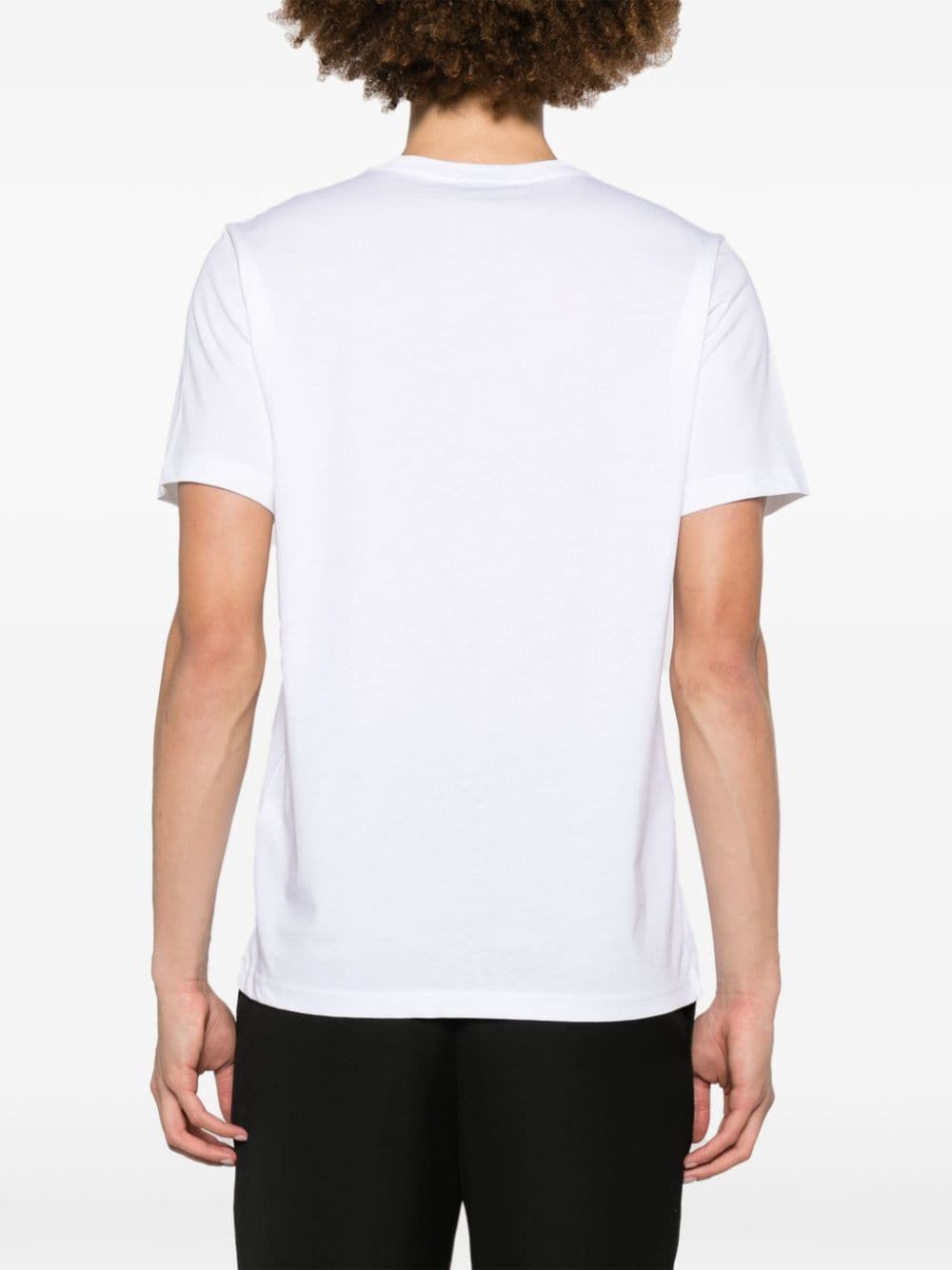 white cotton jersey texture graphic print to the front crew neck short sleeves straight hem