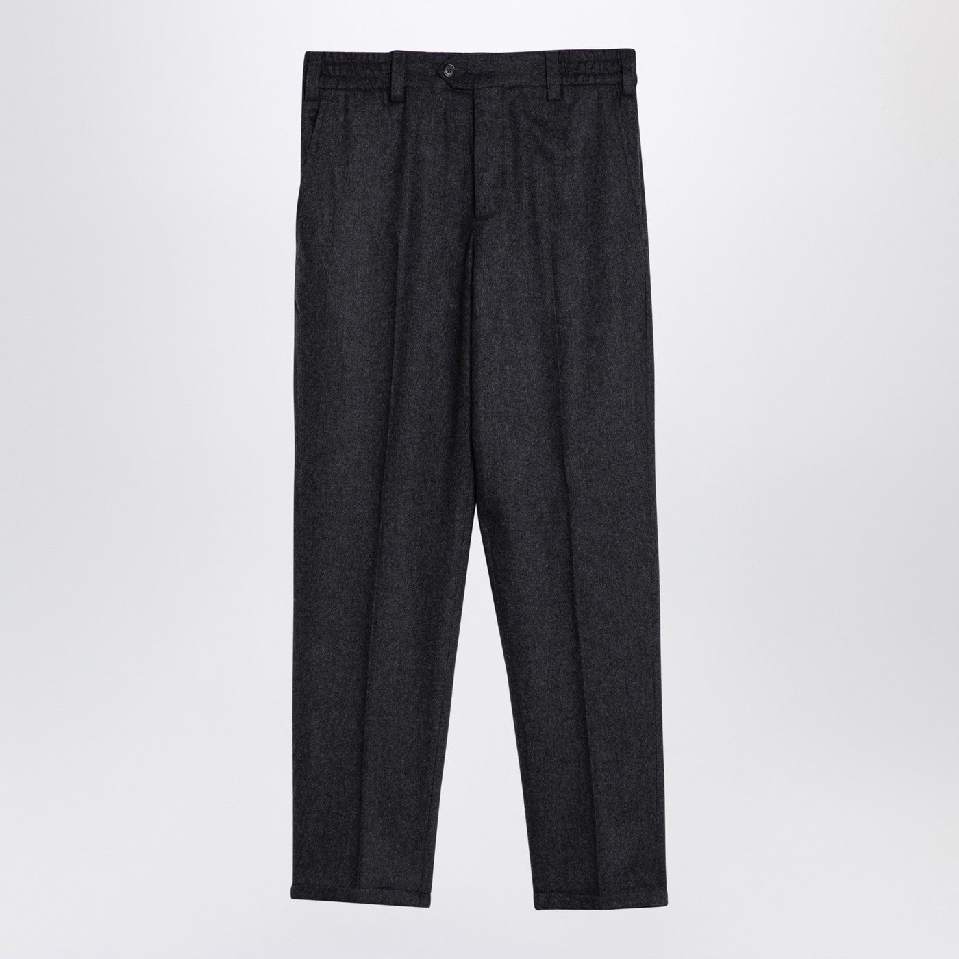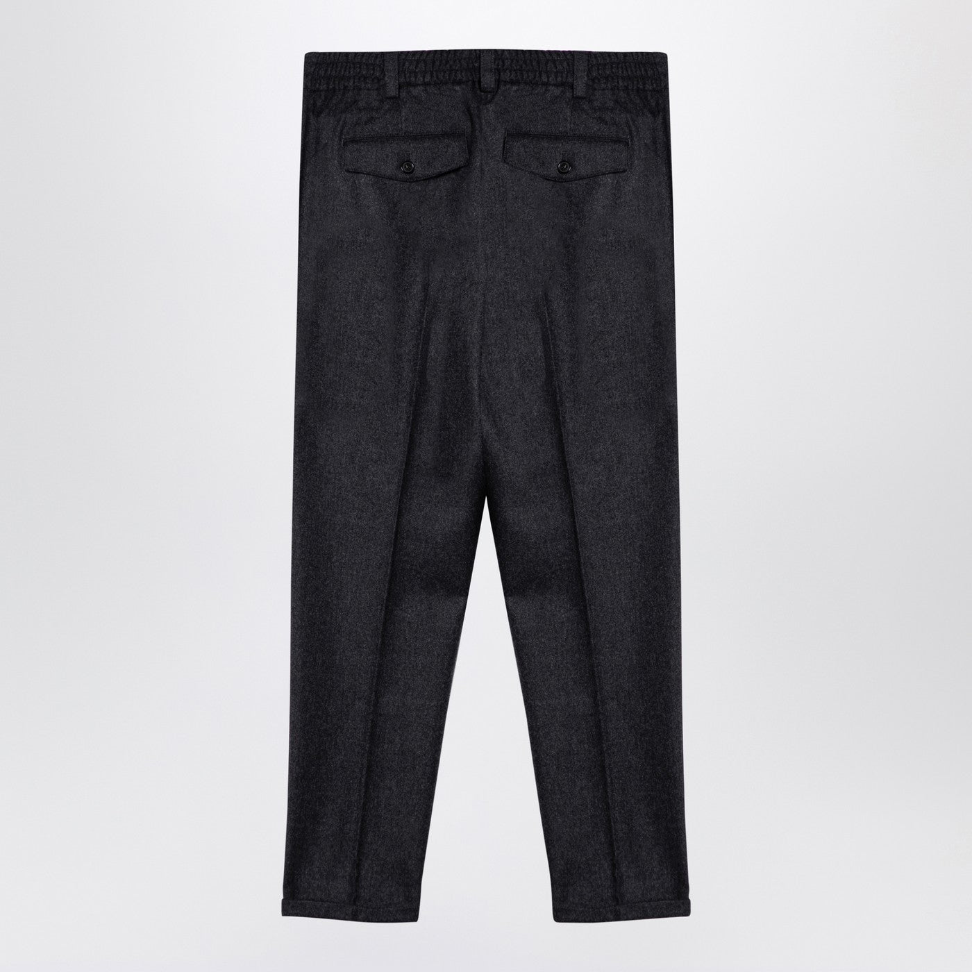 Trousers by PT Torino in lead grey stretch virgin wool and cashmere, featuring an elasticated waistband, belt loops, zip and button fastening, central crease detail, welt side pockets, flap and button pockets on the back and turned-up hem