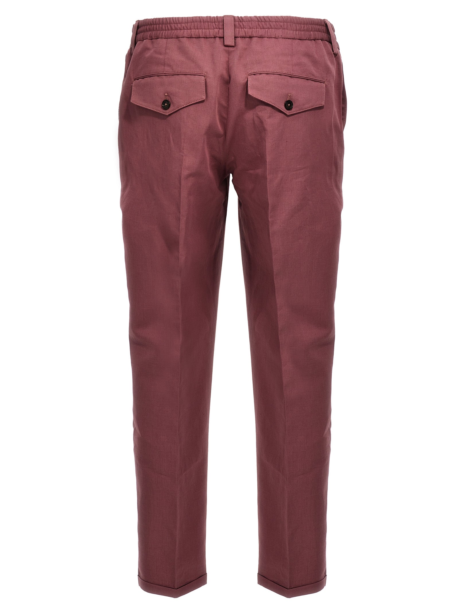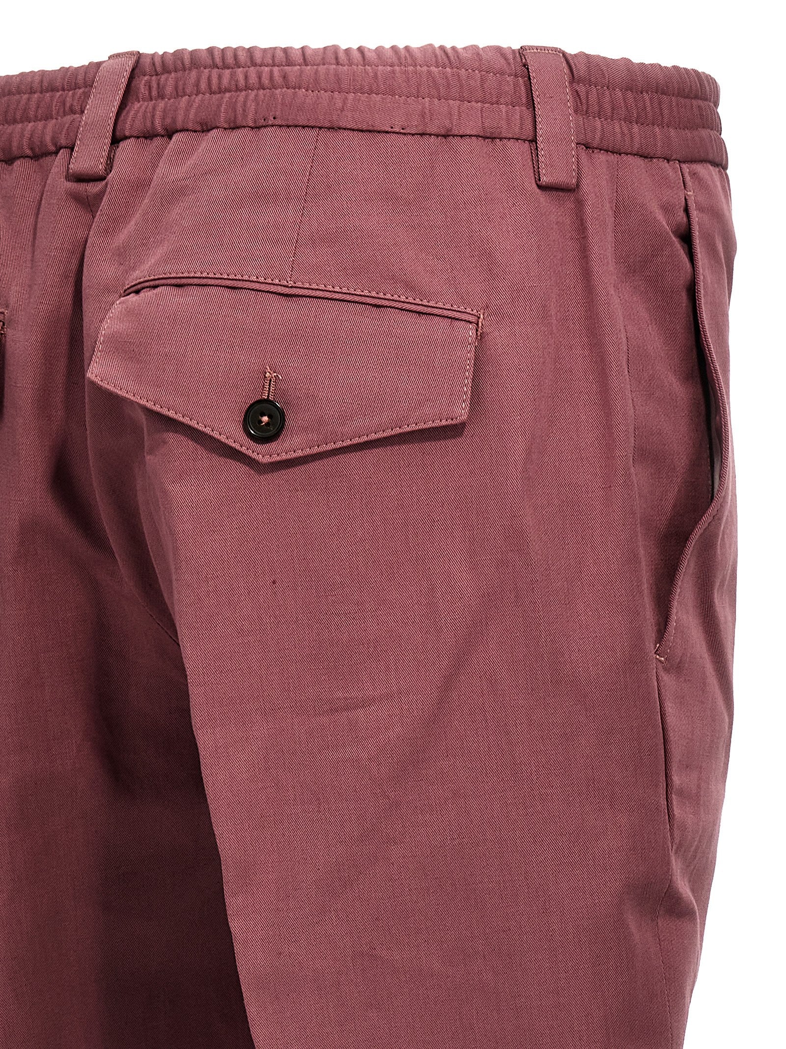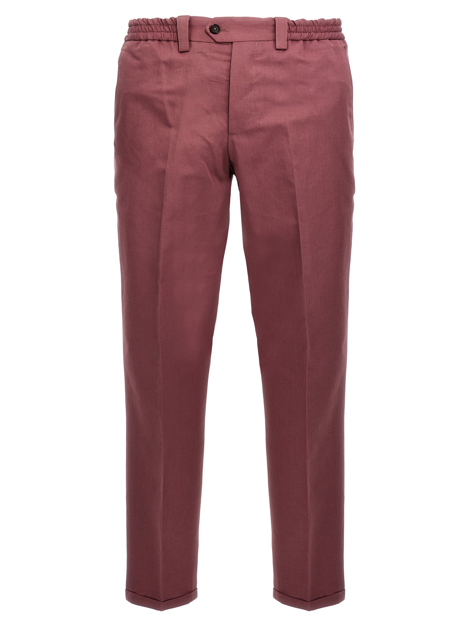 'The Rebel' pants in cotton and linen blend, button closure, elastic waistband, pockets, turned-up hem.