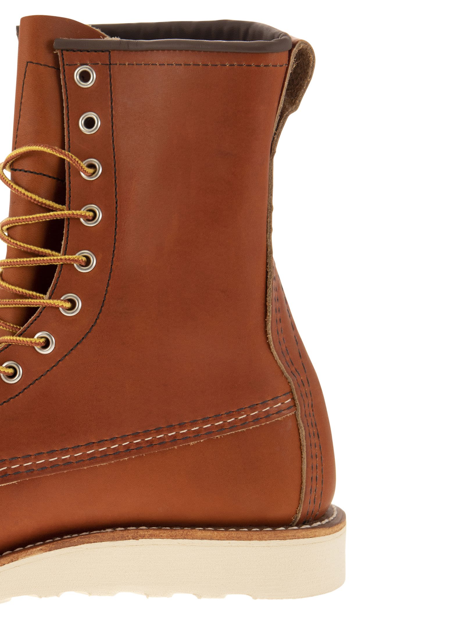The Classic Moc with a taller silhouette is synonymous with Red Wing Heritage. The unmistakable moc toe and Traction Tred sole form a silhouette that sets the standard by which all others are measured. The Gold Legacy leather uses a blend of oils exclusive to Red Wing, allowing the full-grain structure to be maintained without the addition of pigments. - Leather - Moc toe - Visible stitching DESIGNER ID: 00877D