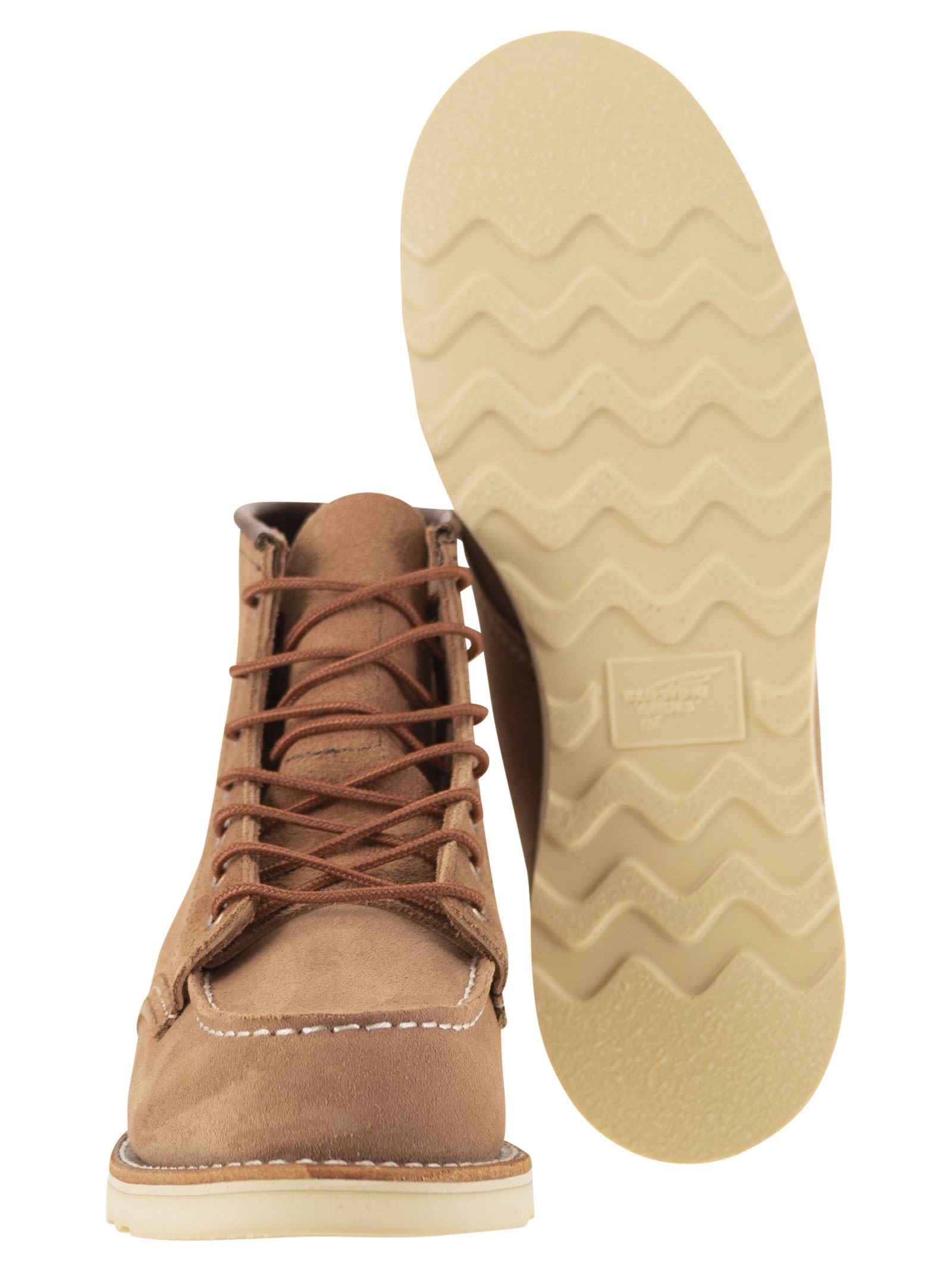 The 6-inch Classic Moc is an icon of Red Wing Heritage and is fully tailored for women. The boot's lighter, polyurethane Traction Tred outsole and unmistakable moc toe are a combination that tells a style story for more than 70 years in the making. - Goodyear Leather Welt - Polyurethane Traction Tred DESIGNER ID: 3319 B DUSTY ROSE ABILENE
