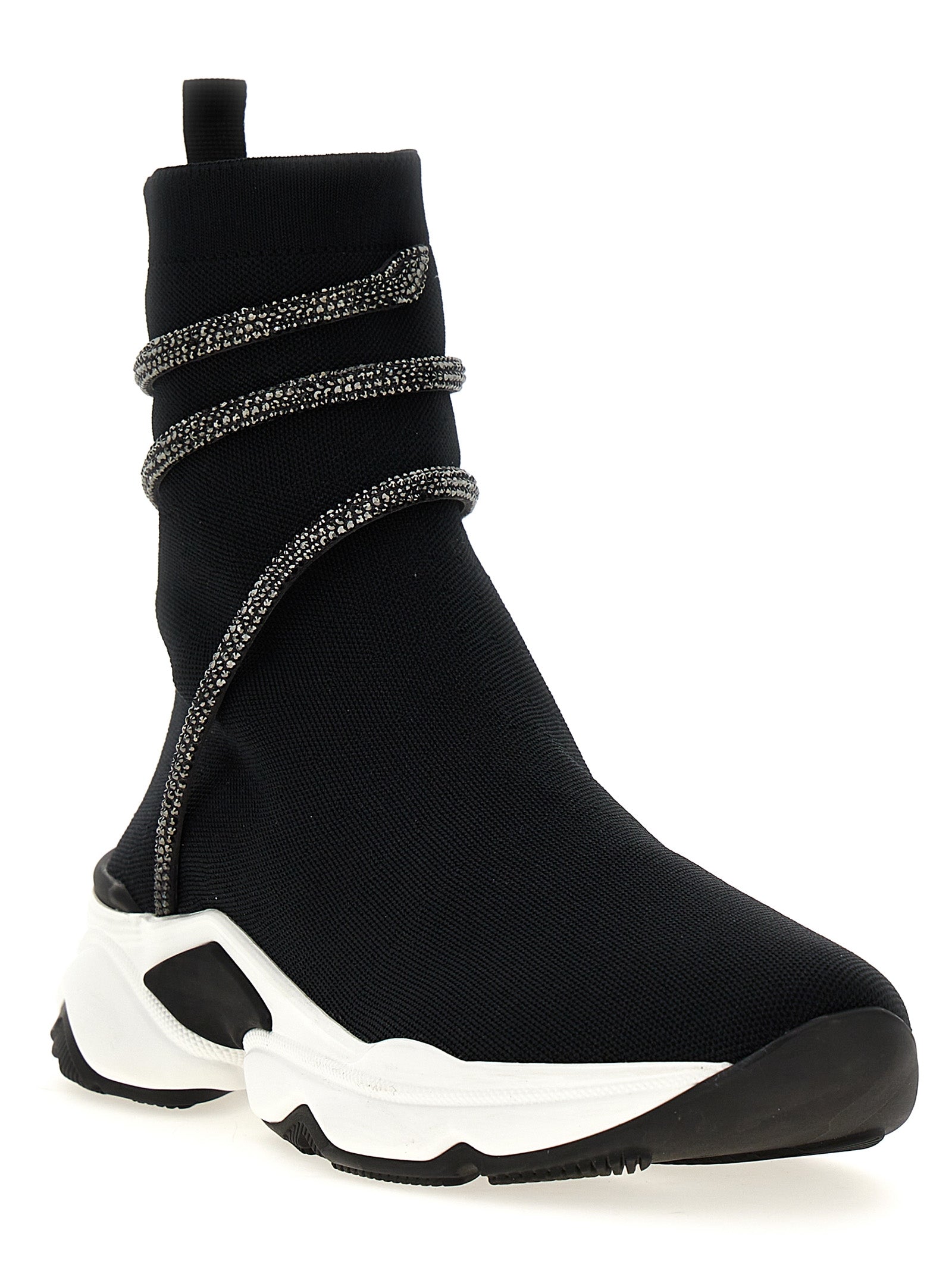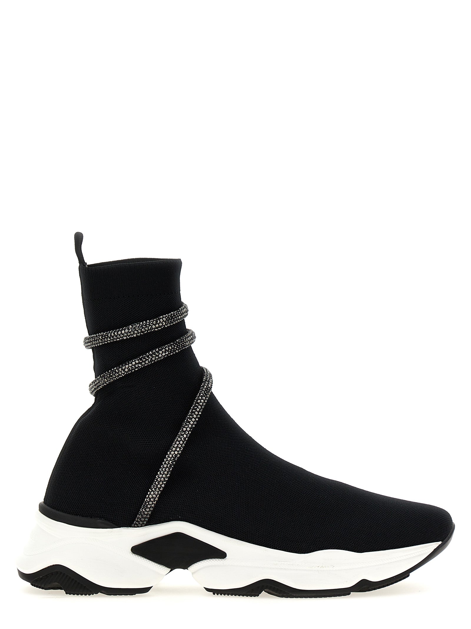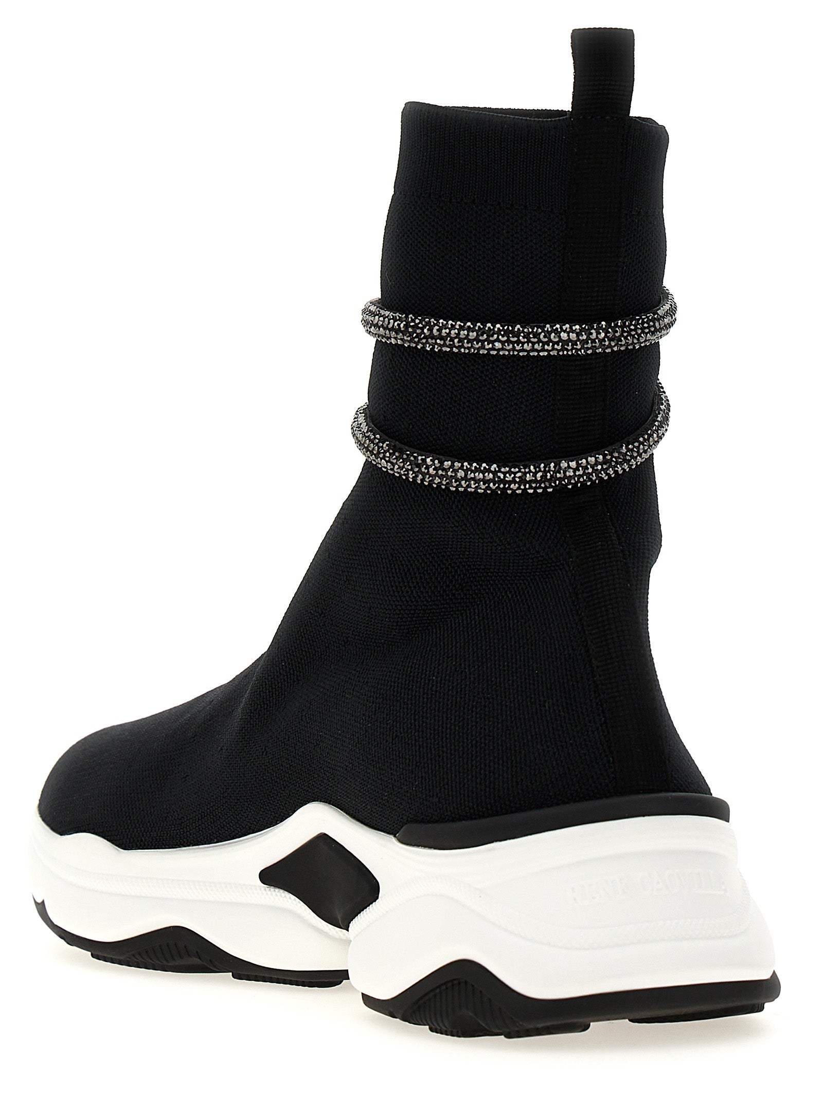 'Cleo Running' knit sock-style sneakers with rubber sole, embellished with a spiral with crystals.