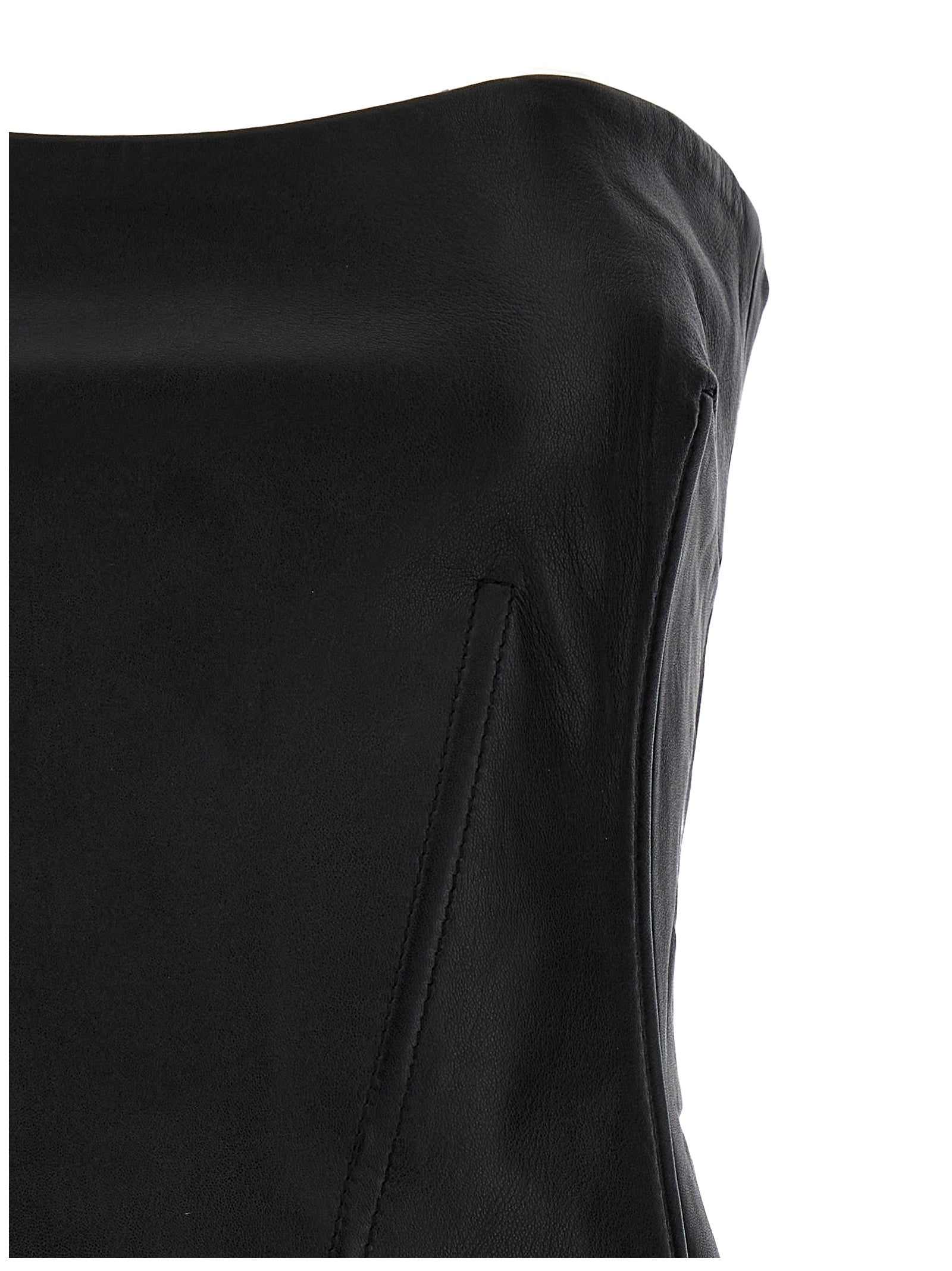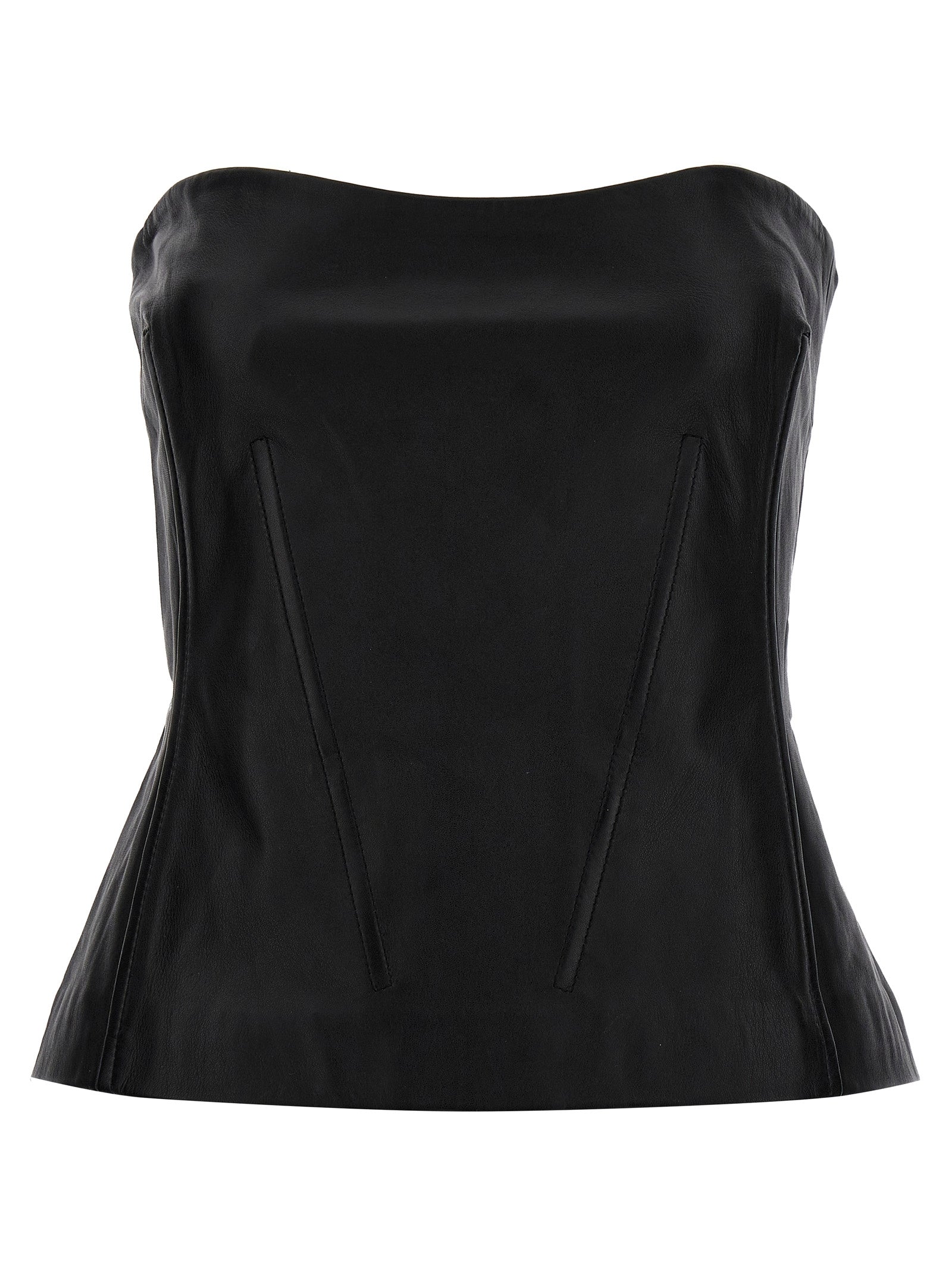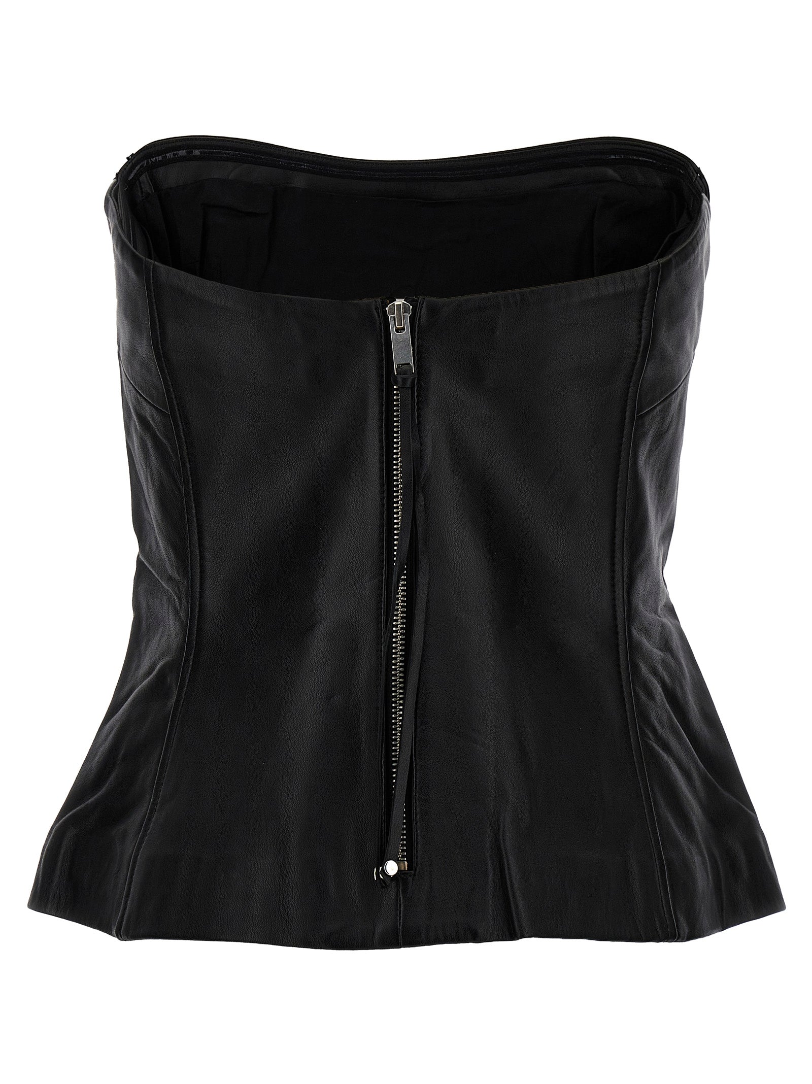 'Veda' leather top, off the shoulder model, and back zip closure.