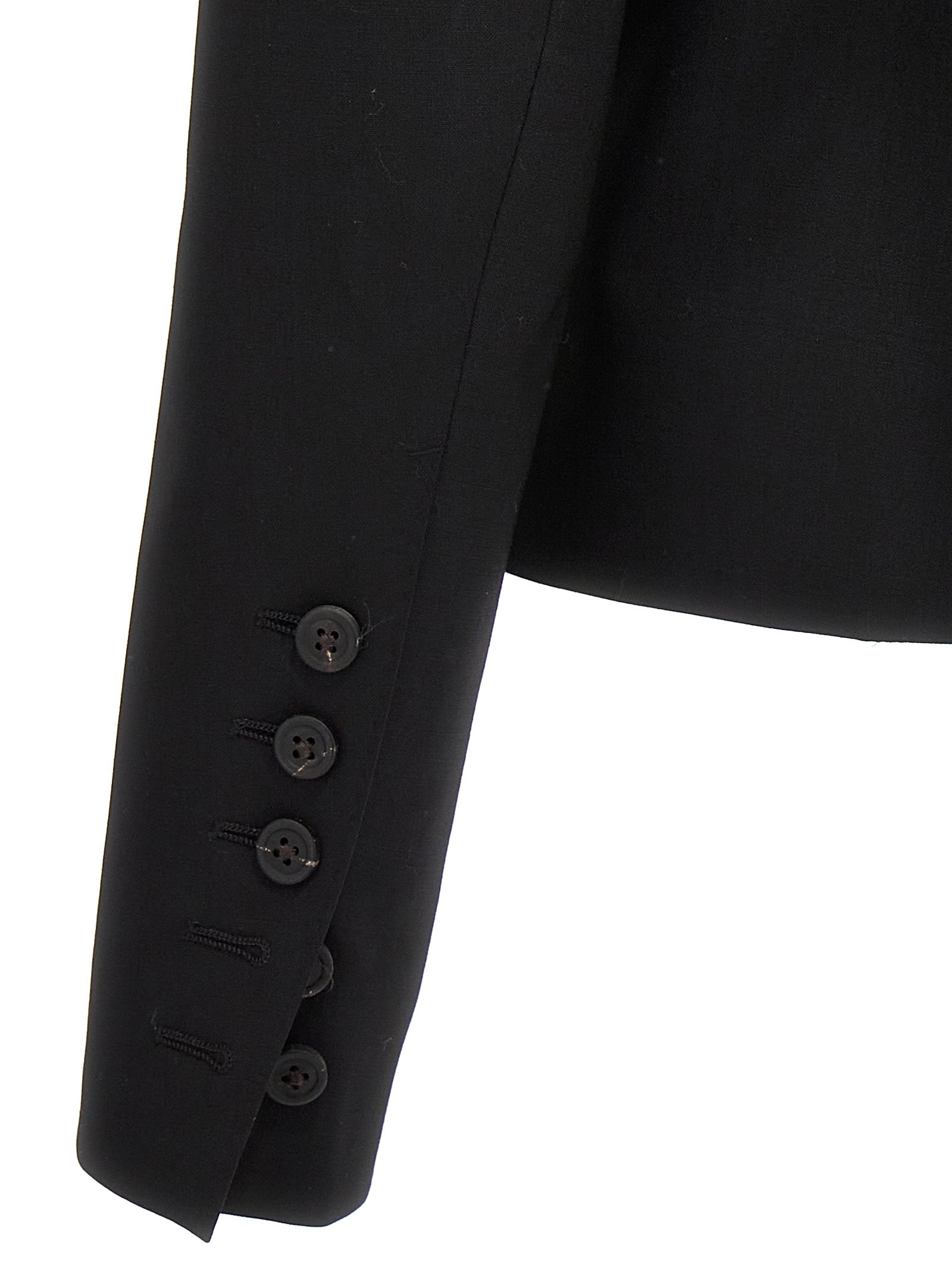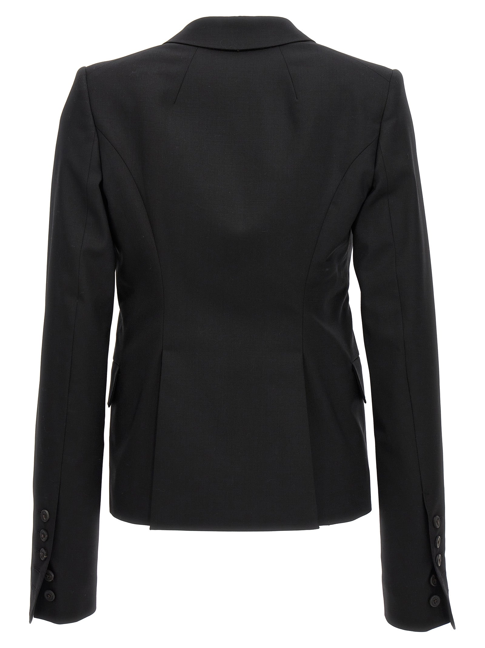 '60CM Soft' single-breasted stretch wool blazer with button closure, pockets, long sleeves, structured shoulder straps, back vents.