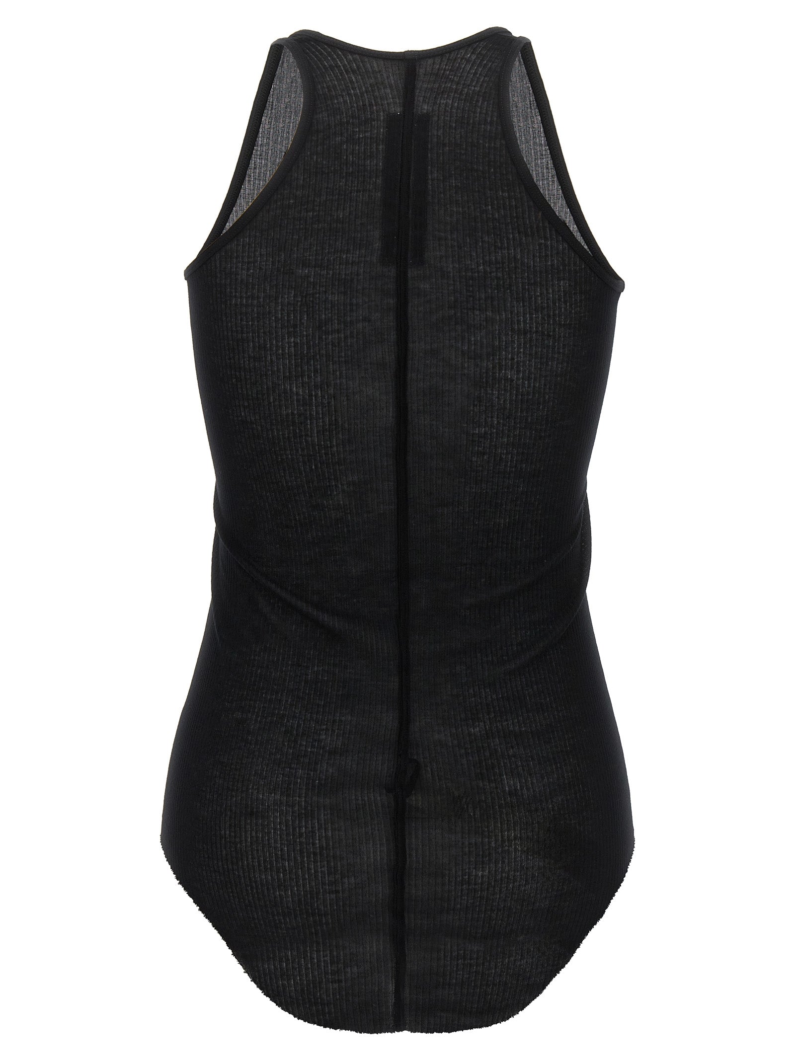 'Basic Rib' ribbed viscose and silk tank top with round neckline, raw cut hem.