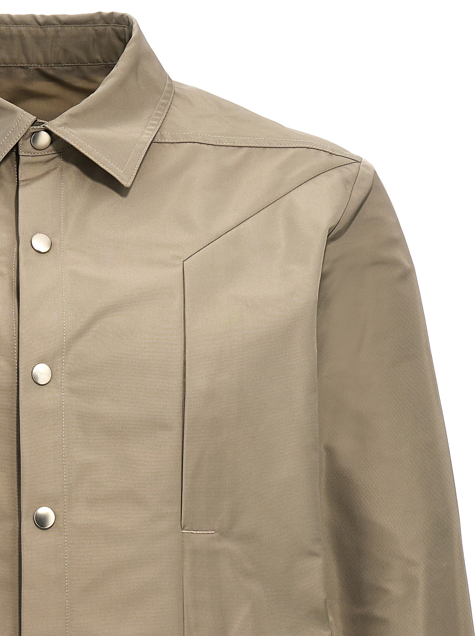 Fogpocket nylon jacket with button closure, long cuffed sleeves.