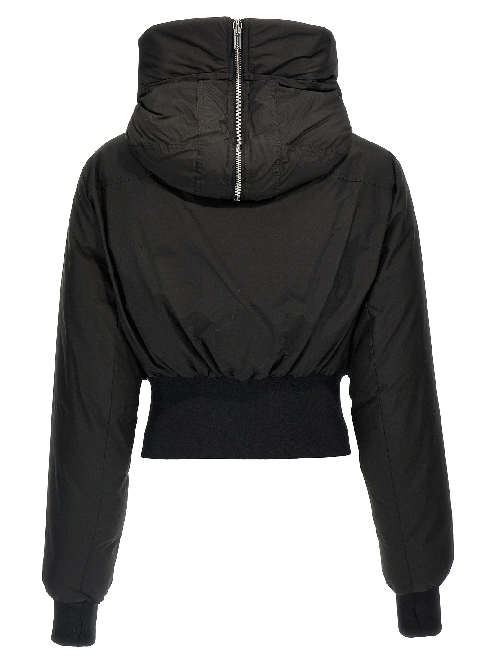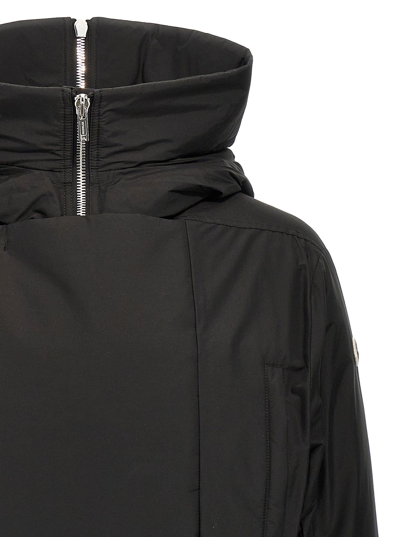 Moncler + Rick Owens 'Alice' parka in cotton blend with down padding, logo patch on the sleeve, large hood with central zip, zip and button closure, pockets, long cuffed sleeves, elastic band on the hem.