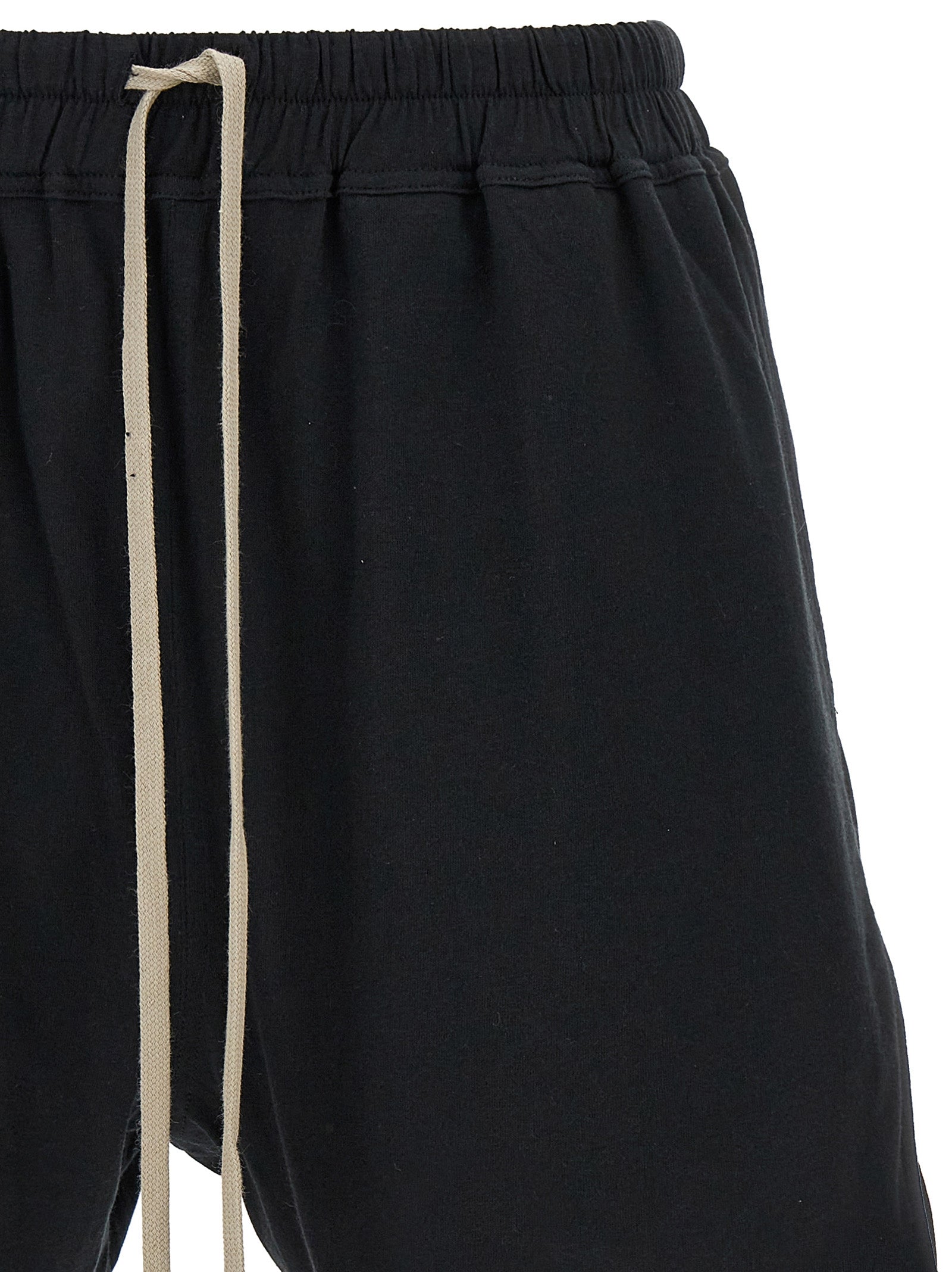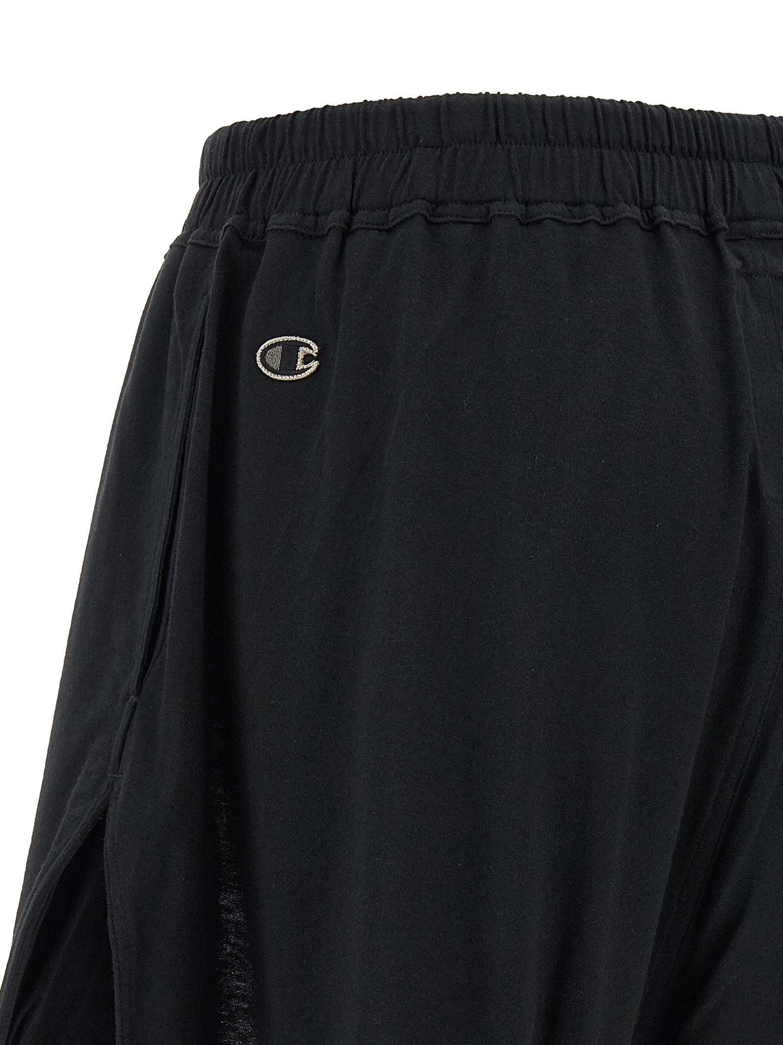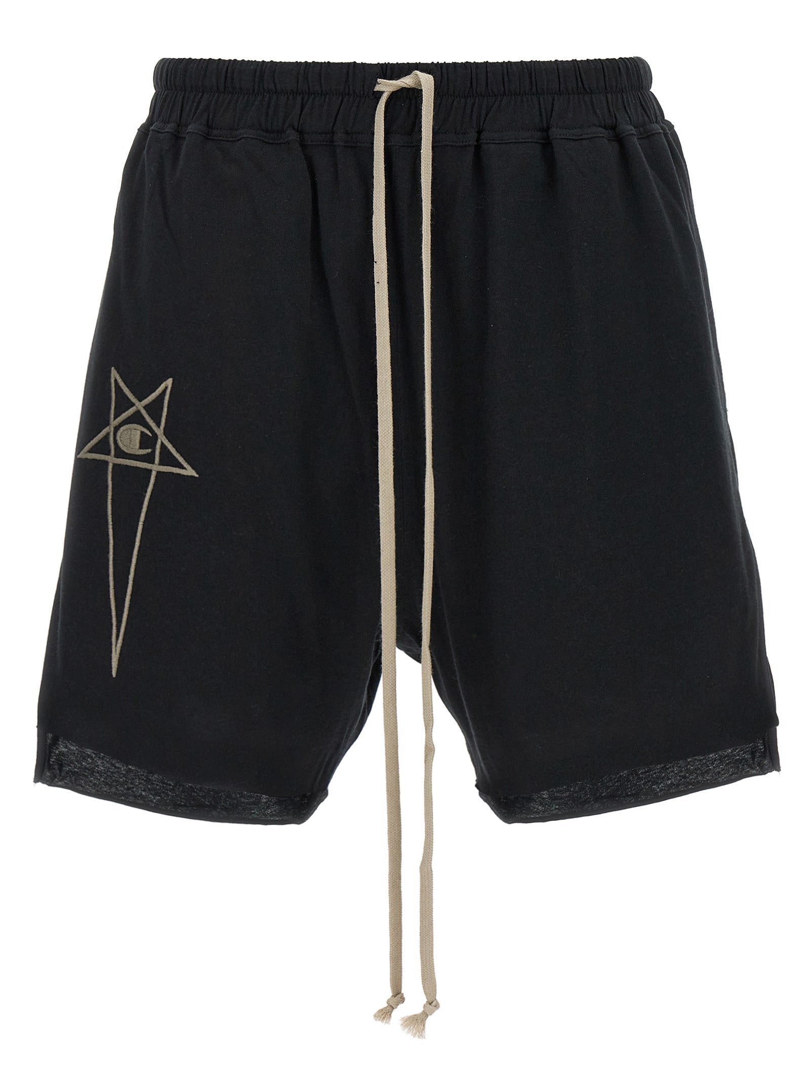 Rick Owens x Champion 'Dolphin Boxers' cotton bermuda shorts with logo embroidery, drawstring elastic waistband, pockets, raw cut hem, side slits.