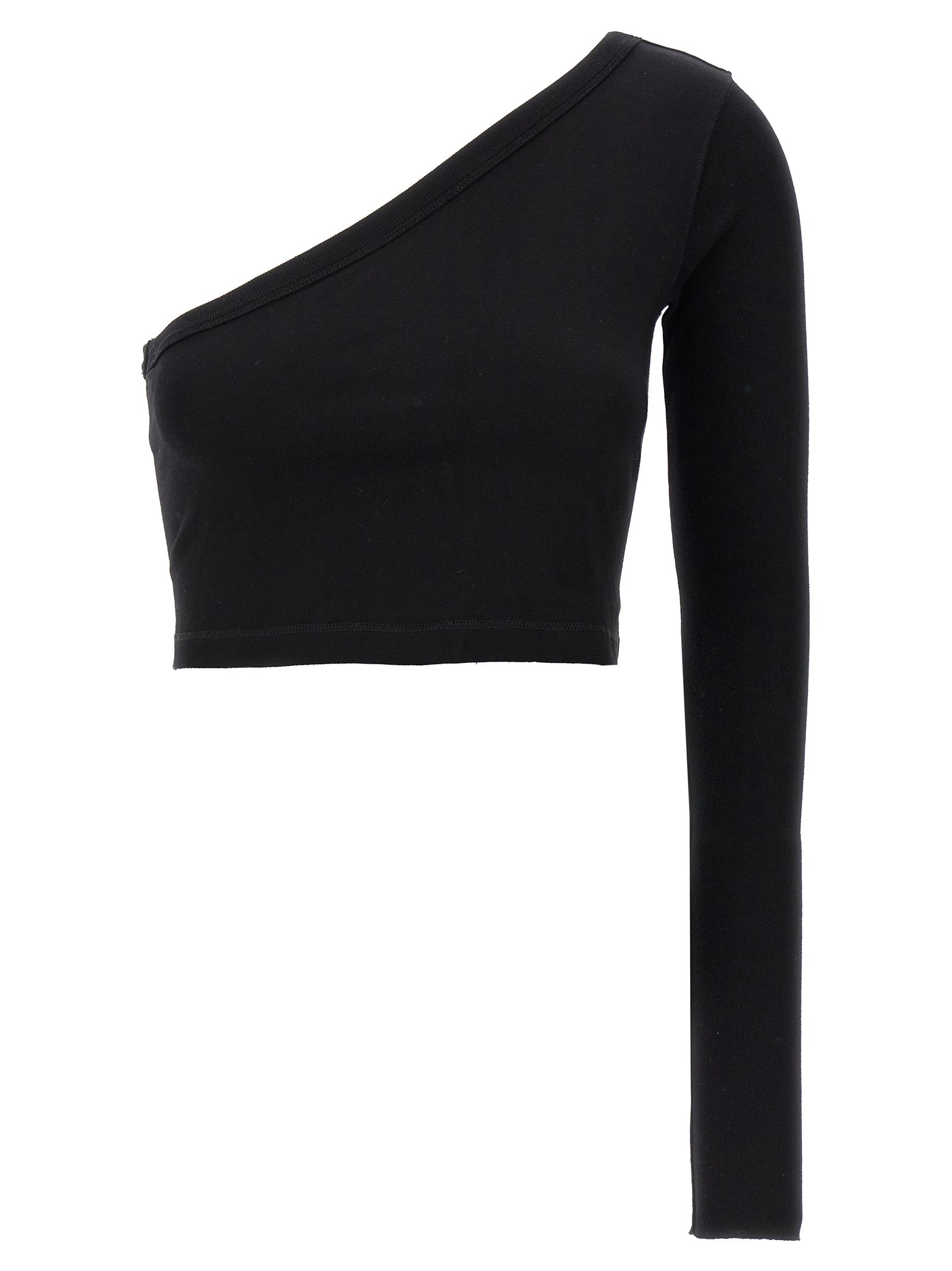 'Ziggy' cotton top, cropped one shoulder model and long sleeves.