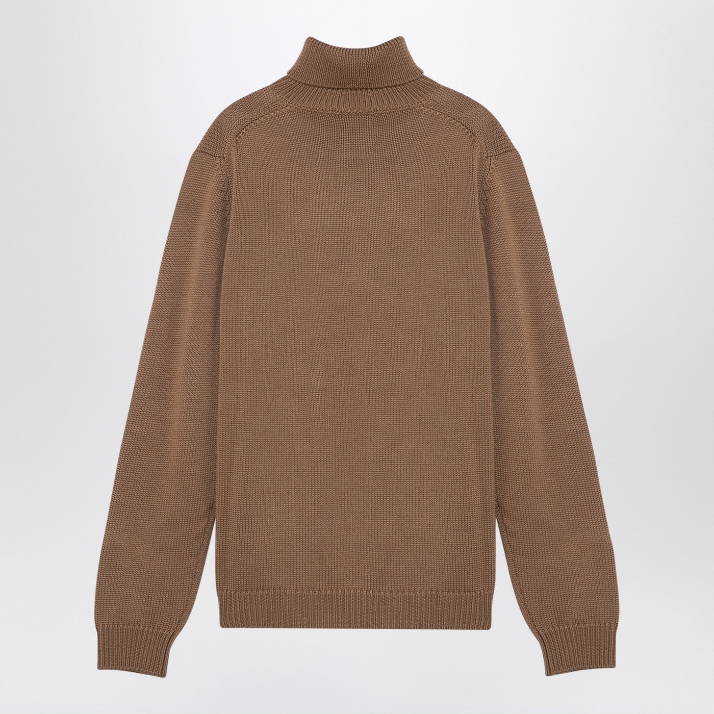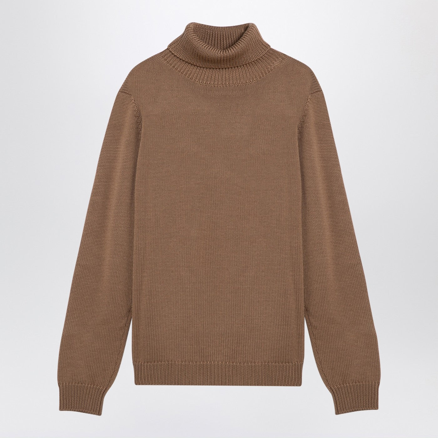 Turtleneck pullover by Roberto Collina in camel-coloured merino wool, featuring ribbed collar, cuffs and hem and regular fit.