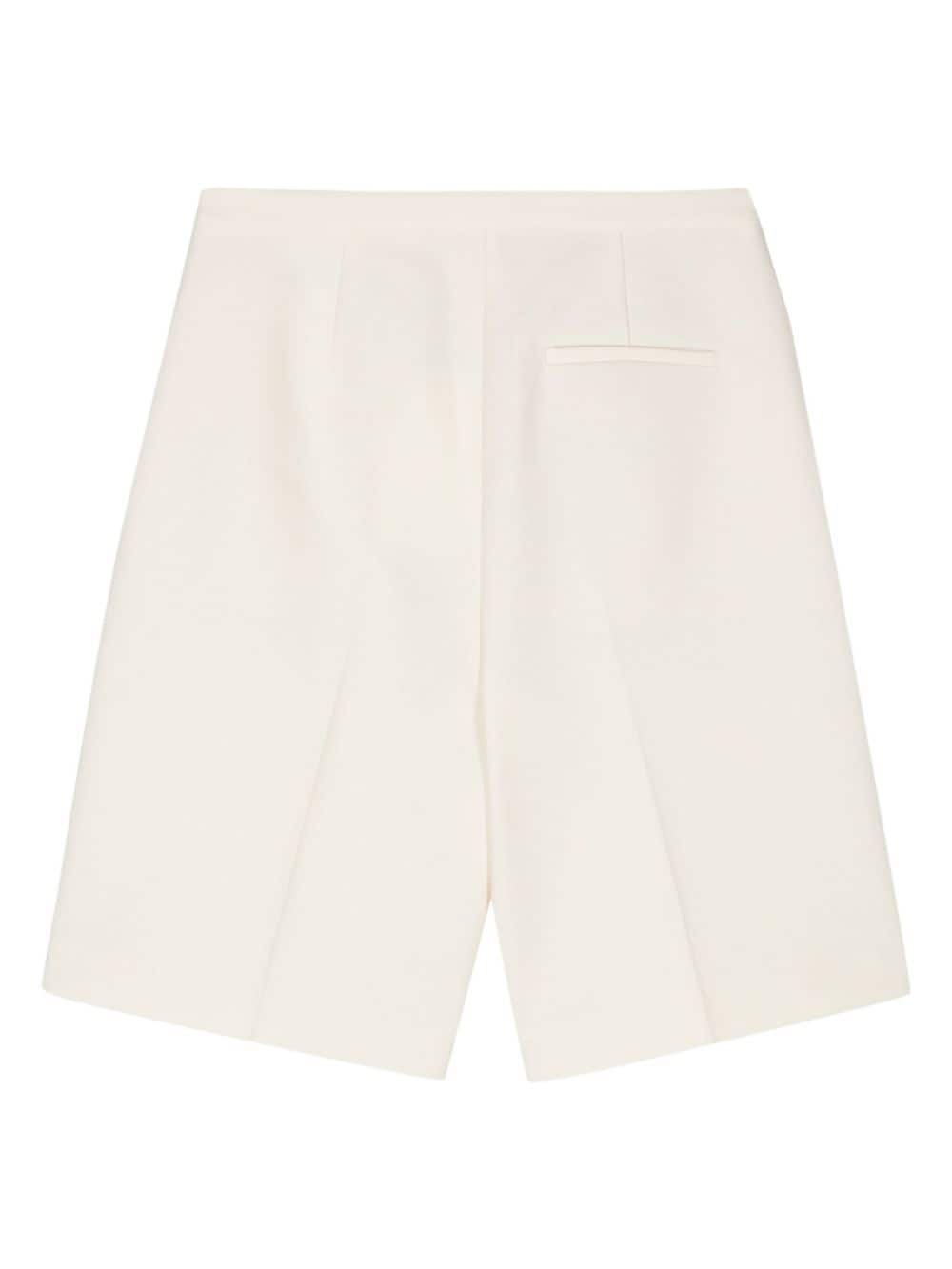 ivory white interlock twill weave pressed crease dart detailing to the rear two side inset pockets rear welt pocket high-waisted wide leg knee-length concealed front button, hook and zip fastening straight hem unlined