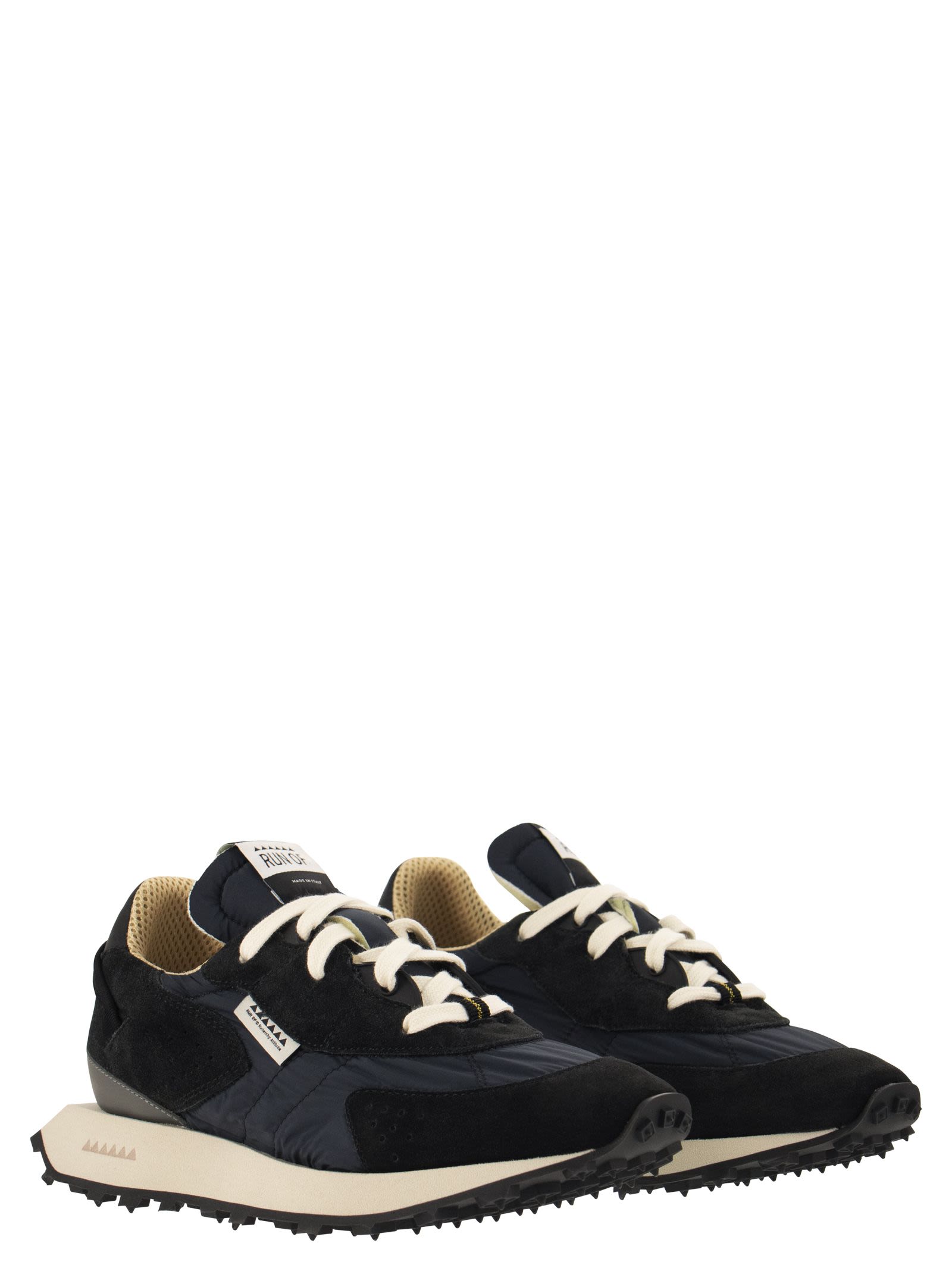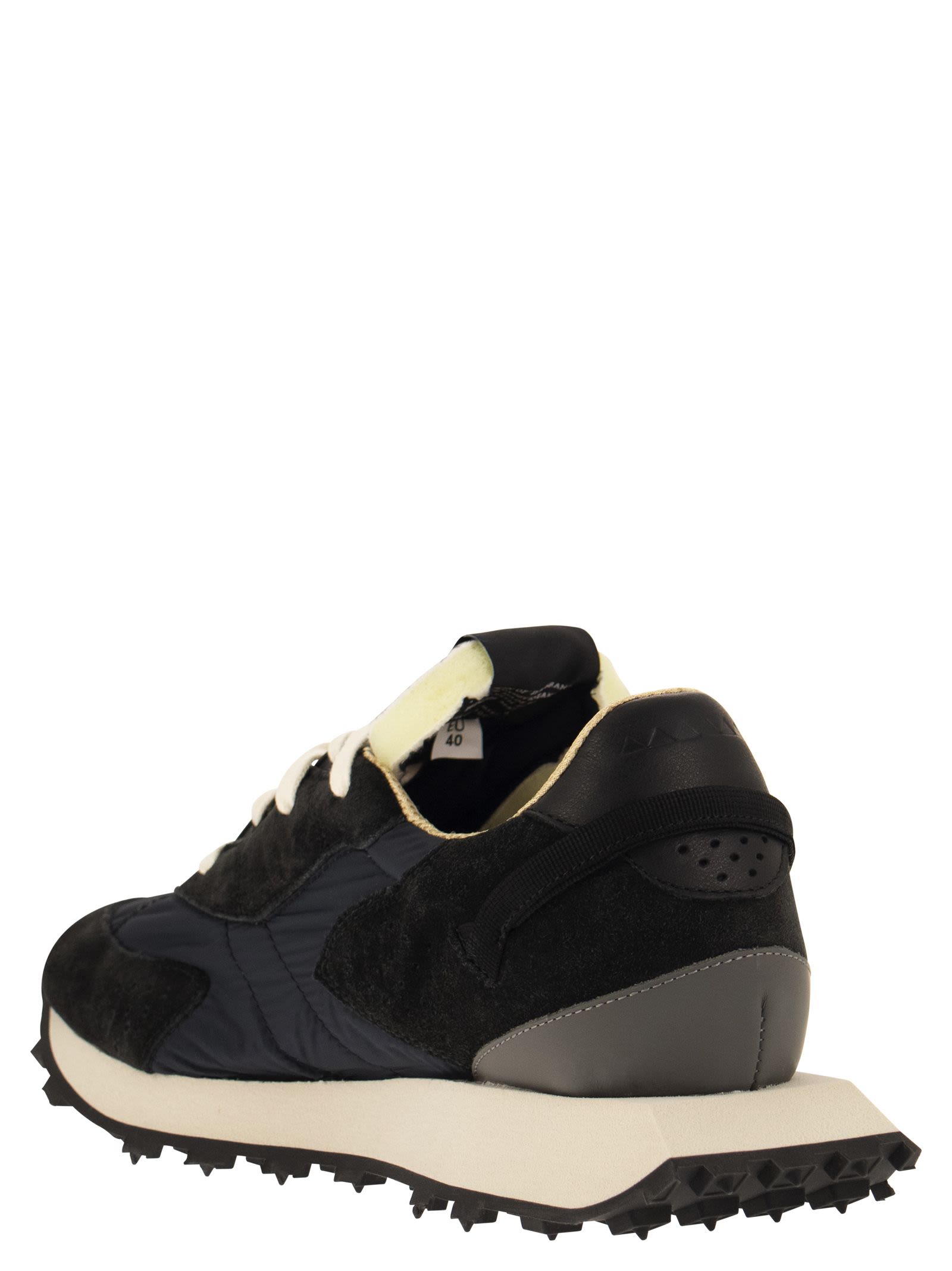 Suede and nylon trainers with contrasting coloured leather heel tab and micro-injected rubber backing. - Handmade in Italy - Memory gel and leather fussbet - Vintage style foam tongue - Cotton laces DESIGNER ID: KRIPTO M 40282 101