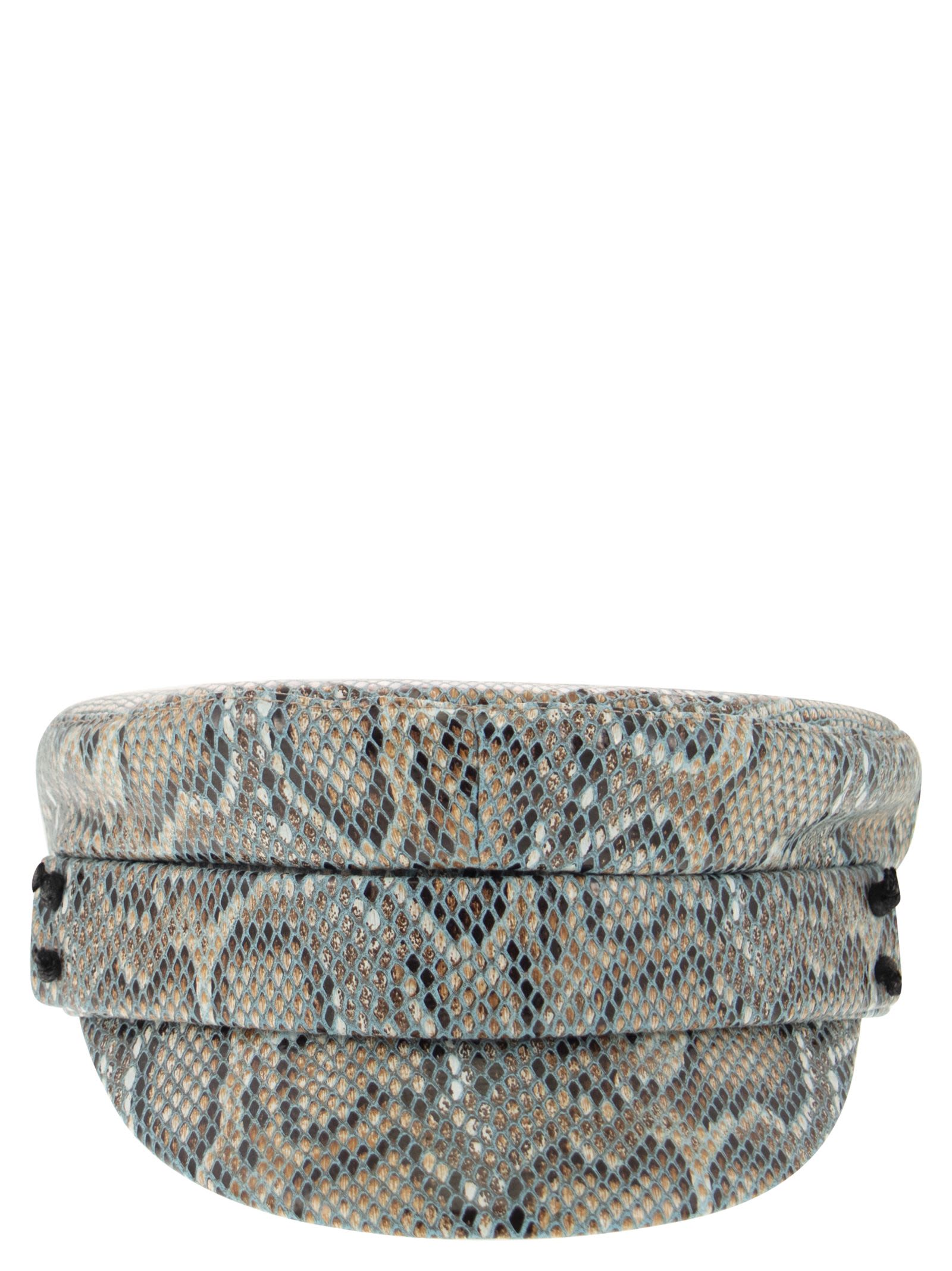 The Ruslan Baginskiy hat with snake pattern is where class meets cool. A unique and unmistakable style. - Snake pattern DESIGNER ID: KPC-P-BLT-SNK 075