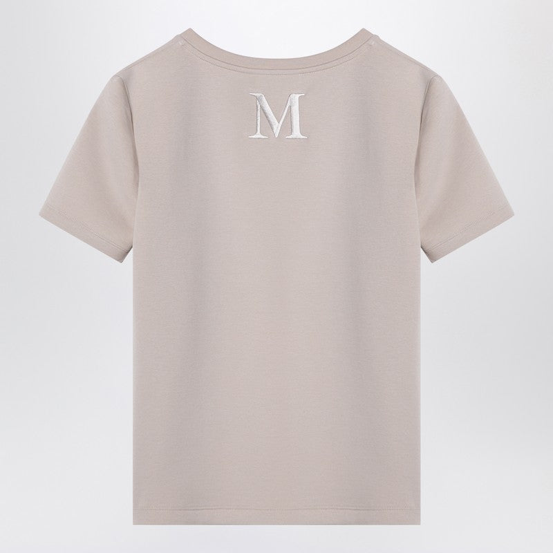 Crew-neck T-shirt by ?S Max Mara in an écru cotton blend, featuring short sleeves, back logo embroidery and straight hem.