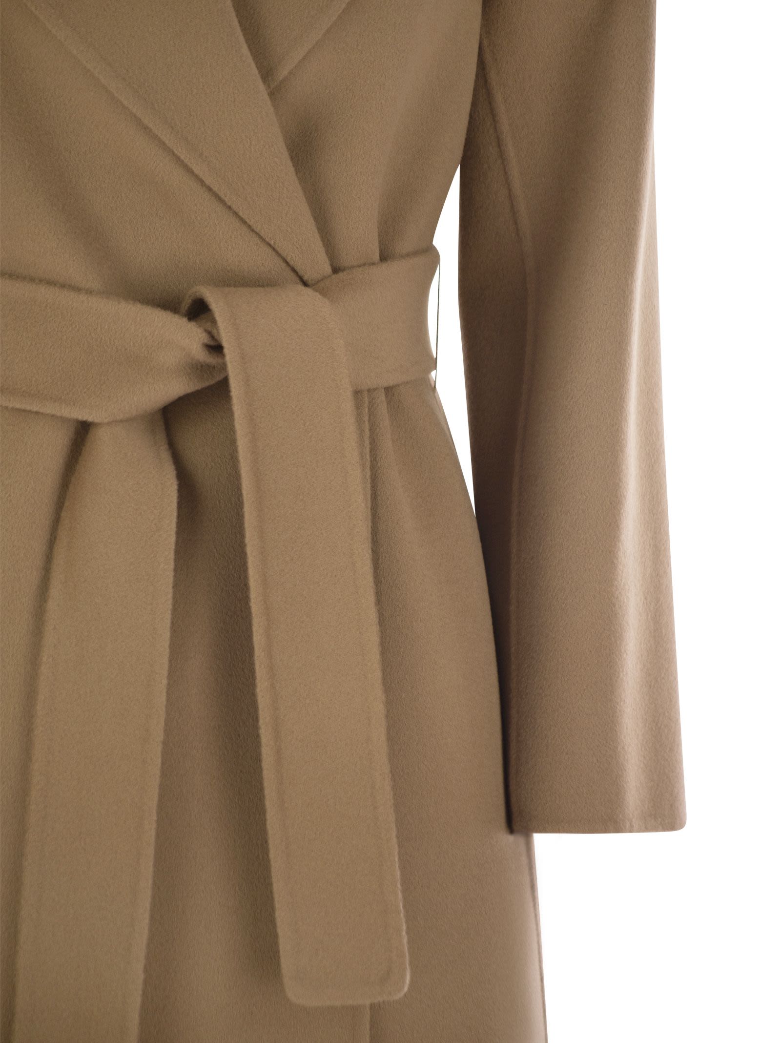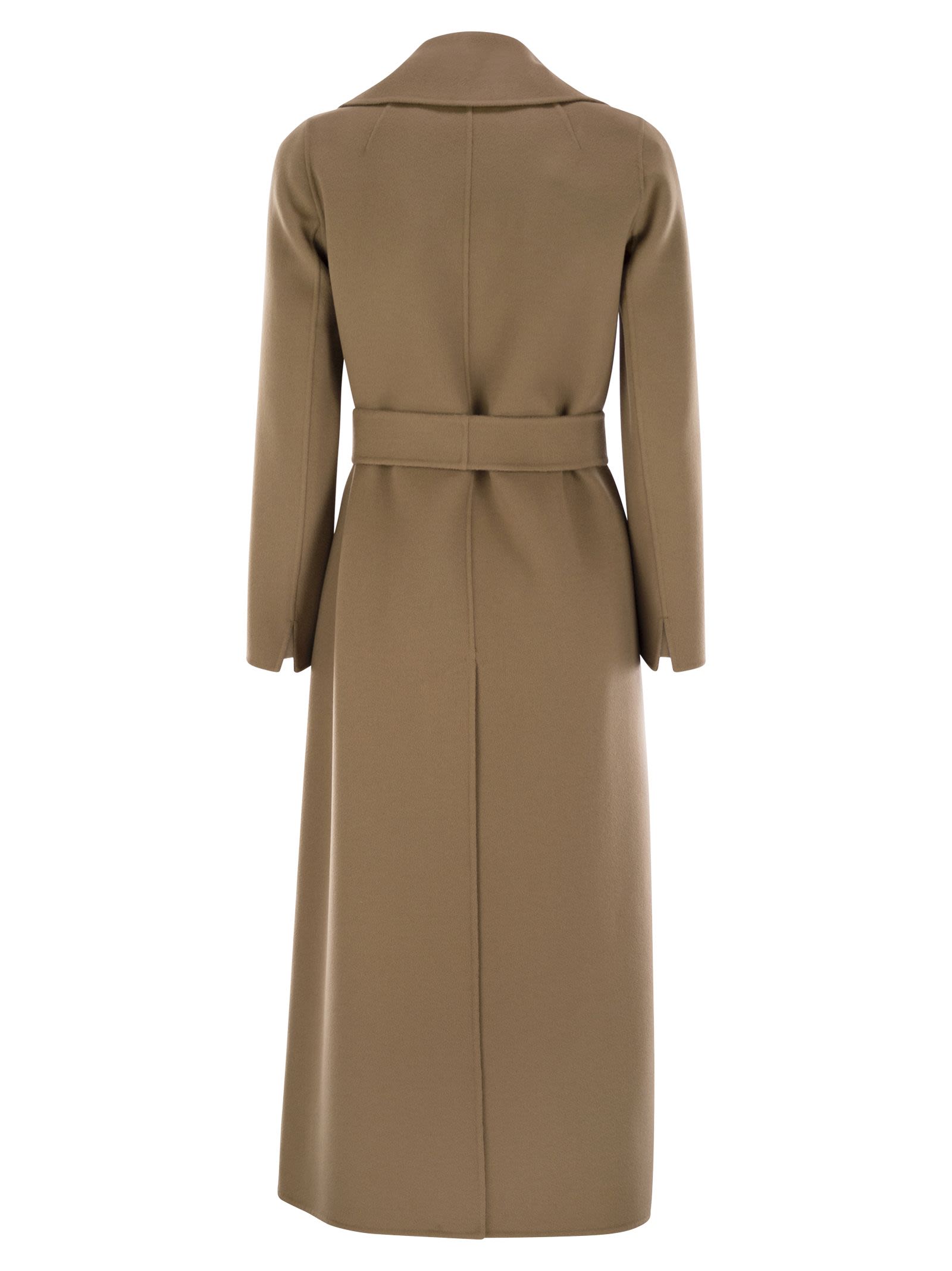 Long dressing gown coat in double pure wool fabric, with a wide lapel collar and pockets in the hips. Lined in silk and fastened with a matching belt. - Long coat - Belt fastening DESIGNER ID: 2429016043600 045
