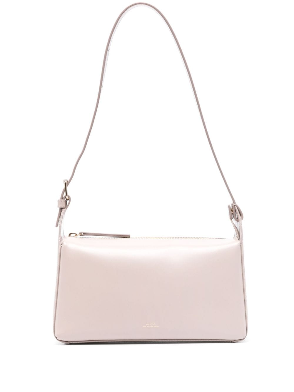 Virginie leather shoulder bag from A.P.C. featuring leather, cotton, logo stamp to the front, gold-tone hardware, top zip fastening, adjustable shoulder strap, internal slip pocket, main compartment and canvas lining.