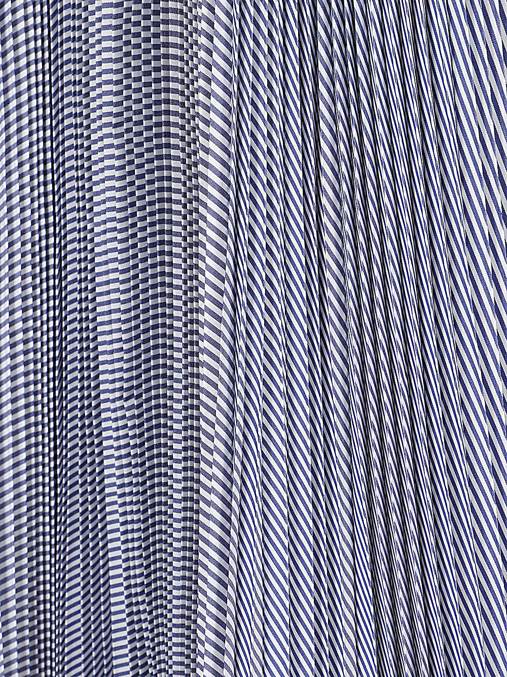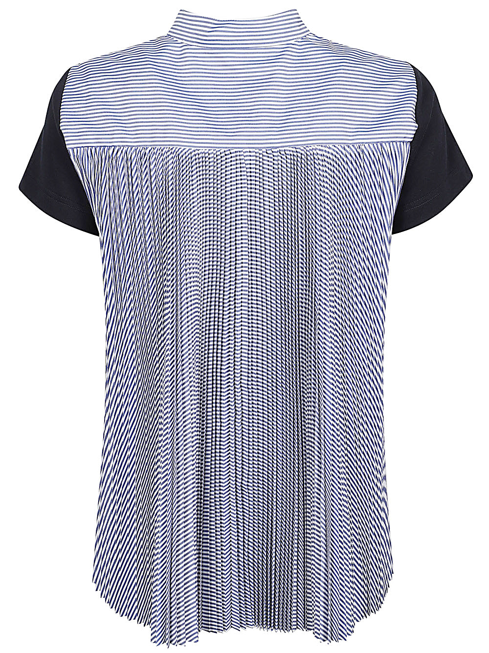 Short-sleeved T-shirt made of cotton, crew neck, dark blue on the front with patch pocket on the chest, shirt effect on the back with white/light blue stripes, straight hem.