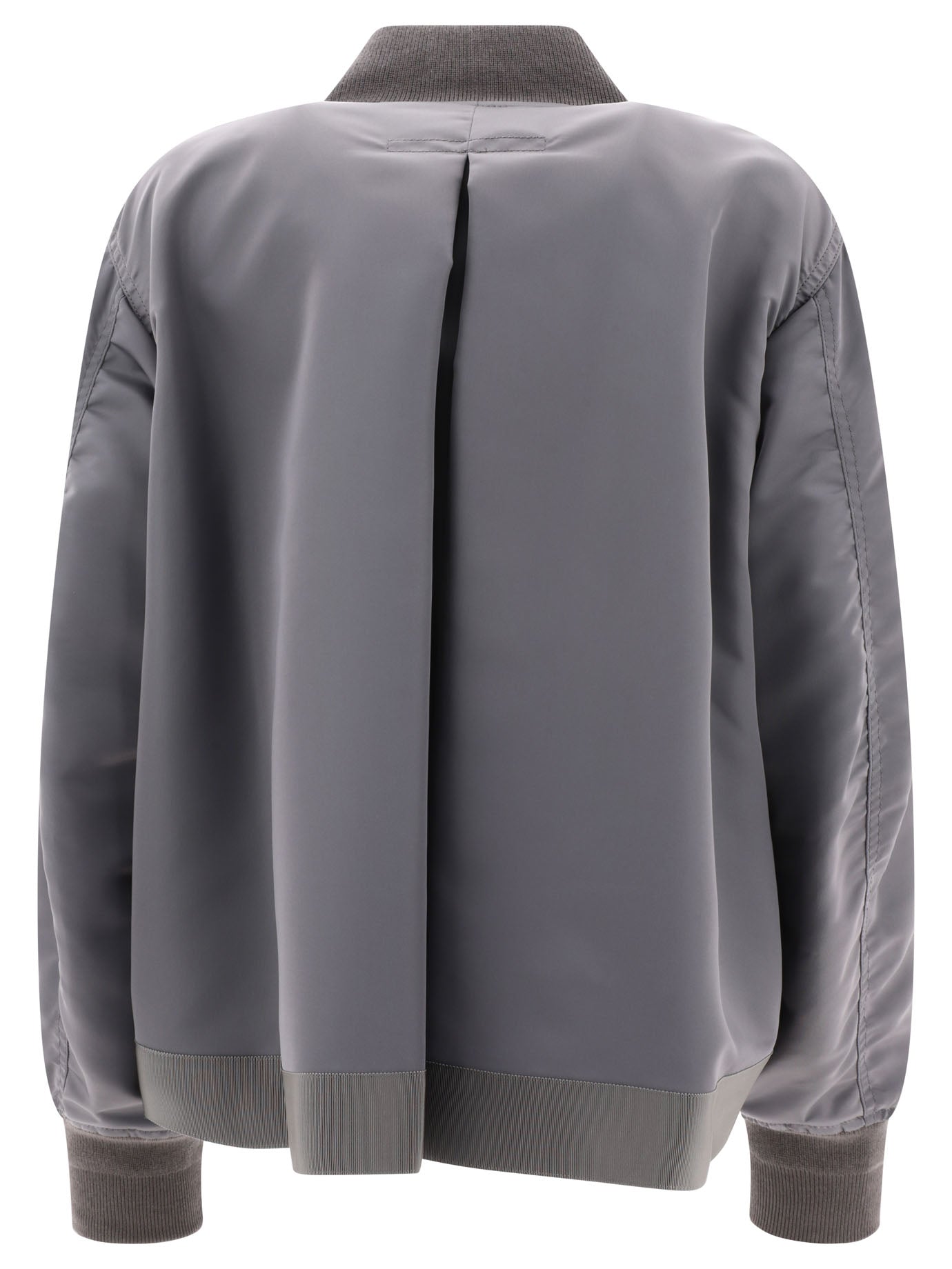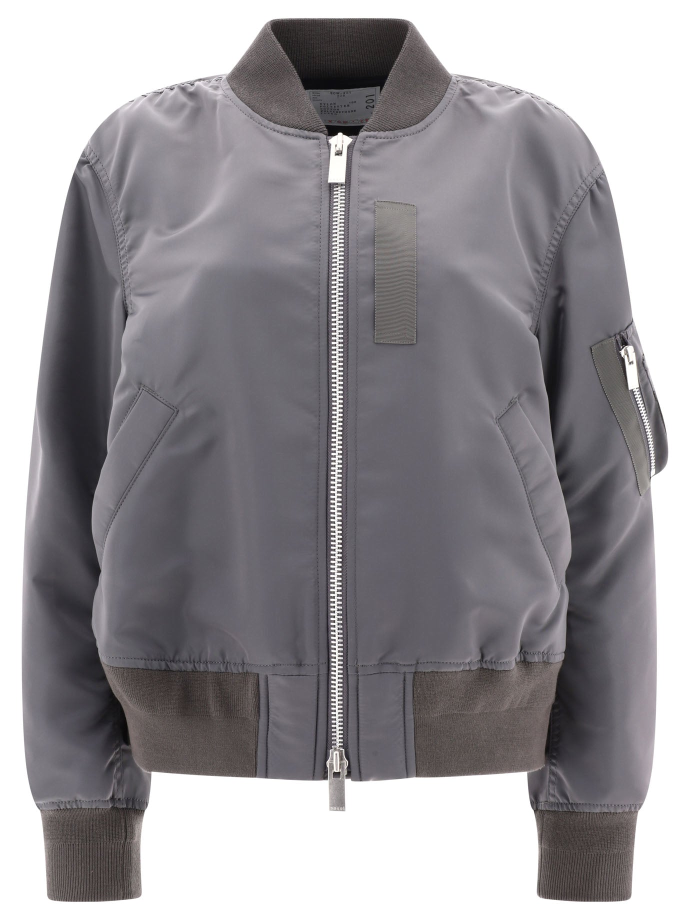 Sacai's Nylon twill bomber jacket is a versatile and trendy item that can't be missed in a modern woman's wardrobe. Its boxy fit and zippered closure make it comfortable and practical to wear on any occasion.
