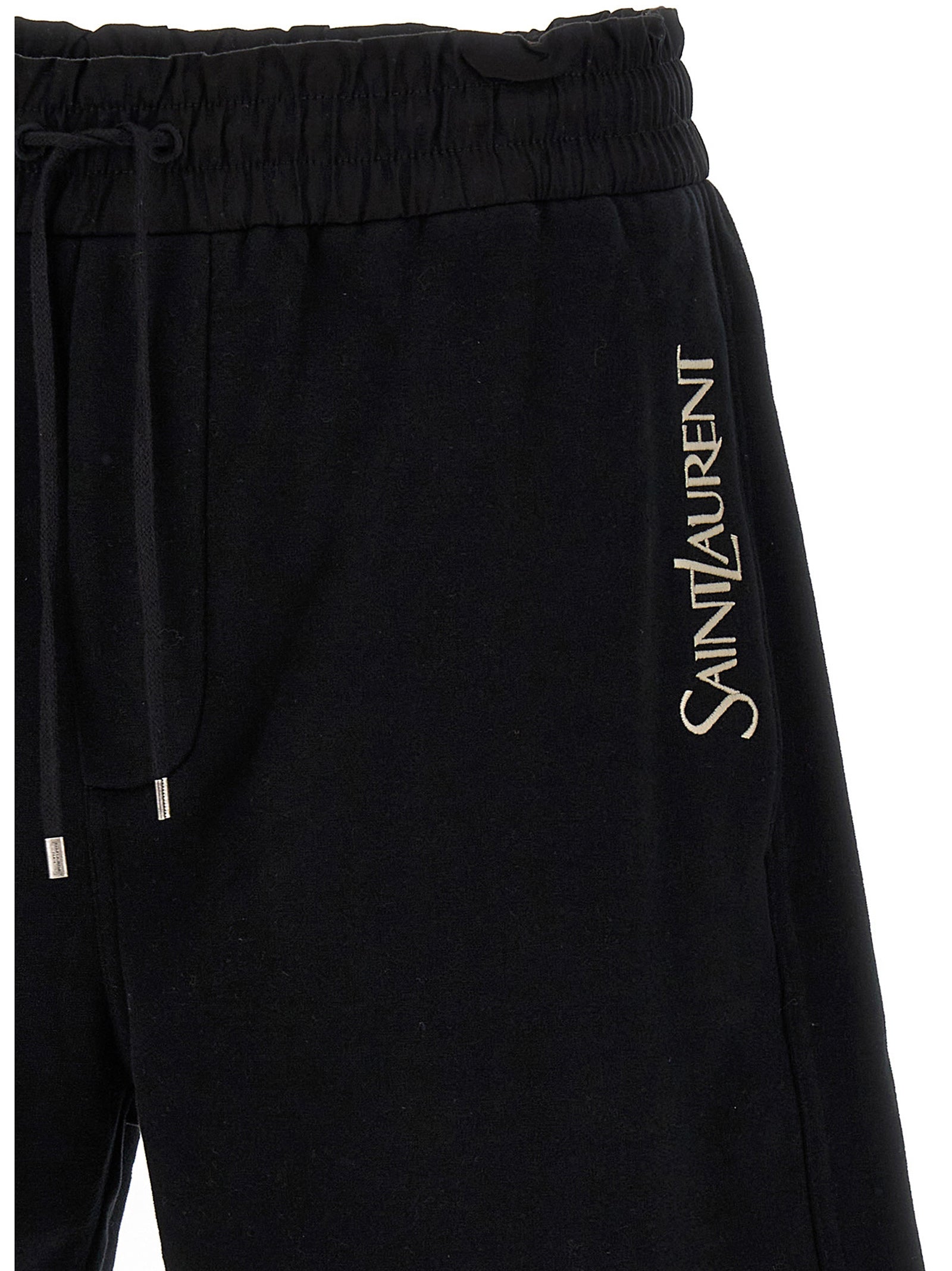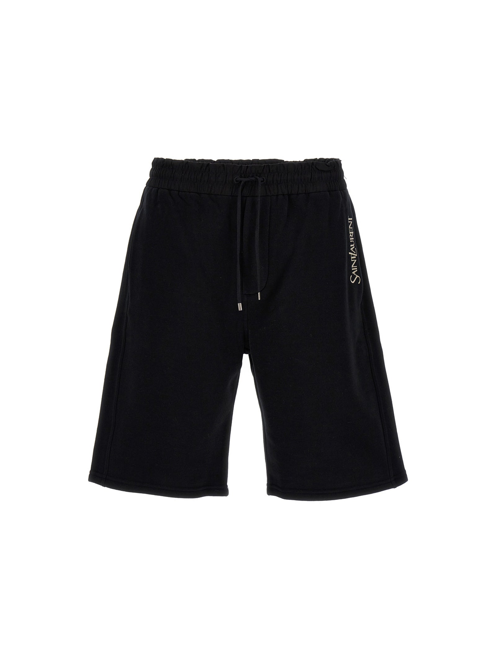 Bermuda 'Sain Laurent' in cotone effetto vellutino, dotato di elastico e coulisse in vita, ricamo logo a contrasto.