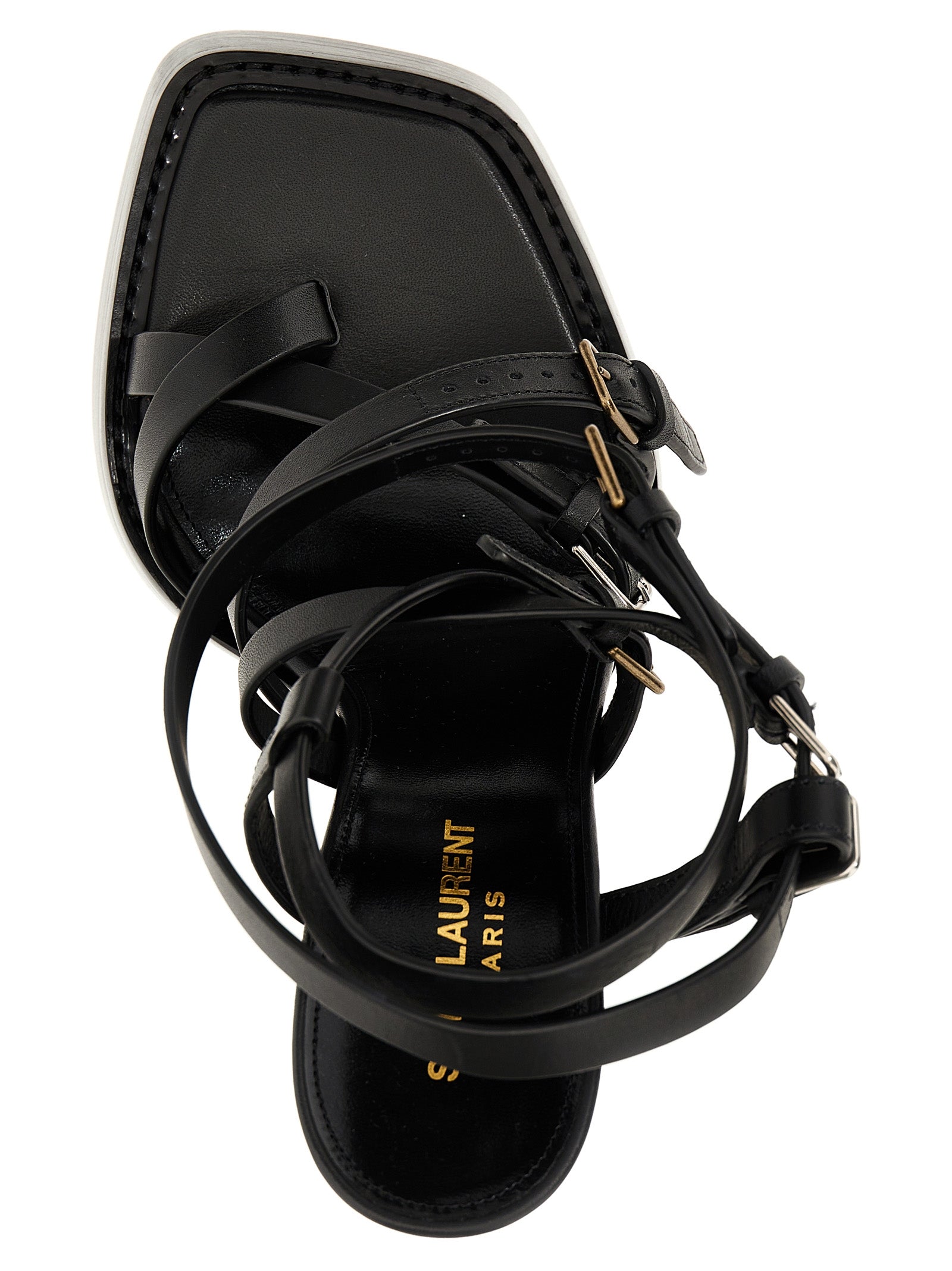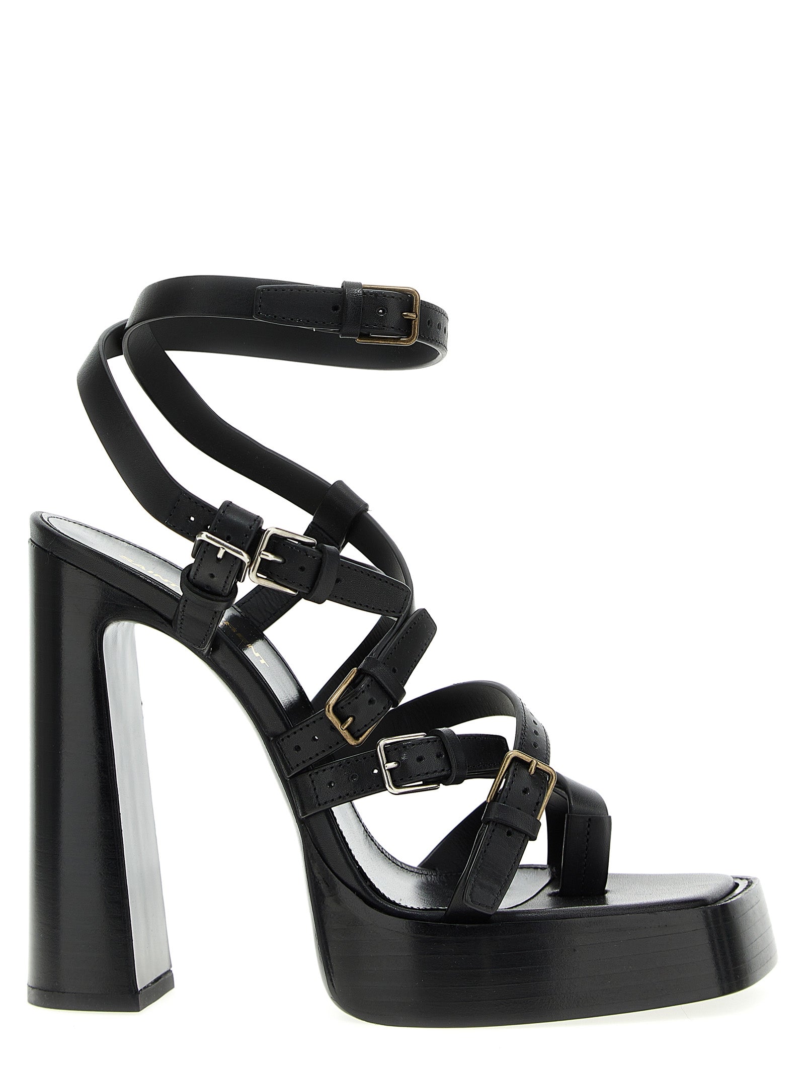 Carine' sandals with leather plateau obligations, ankle strap detail and buckle straps.