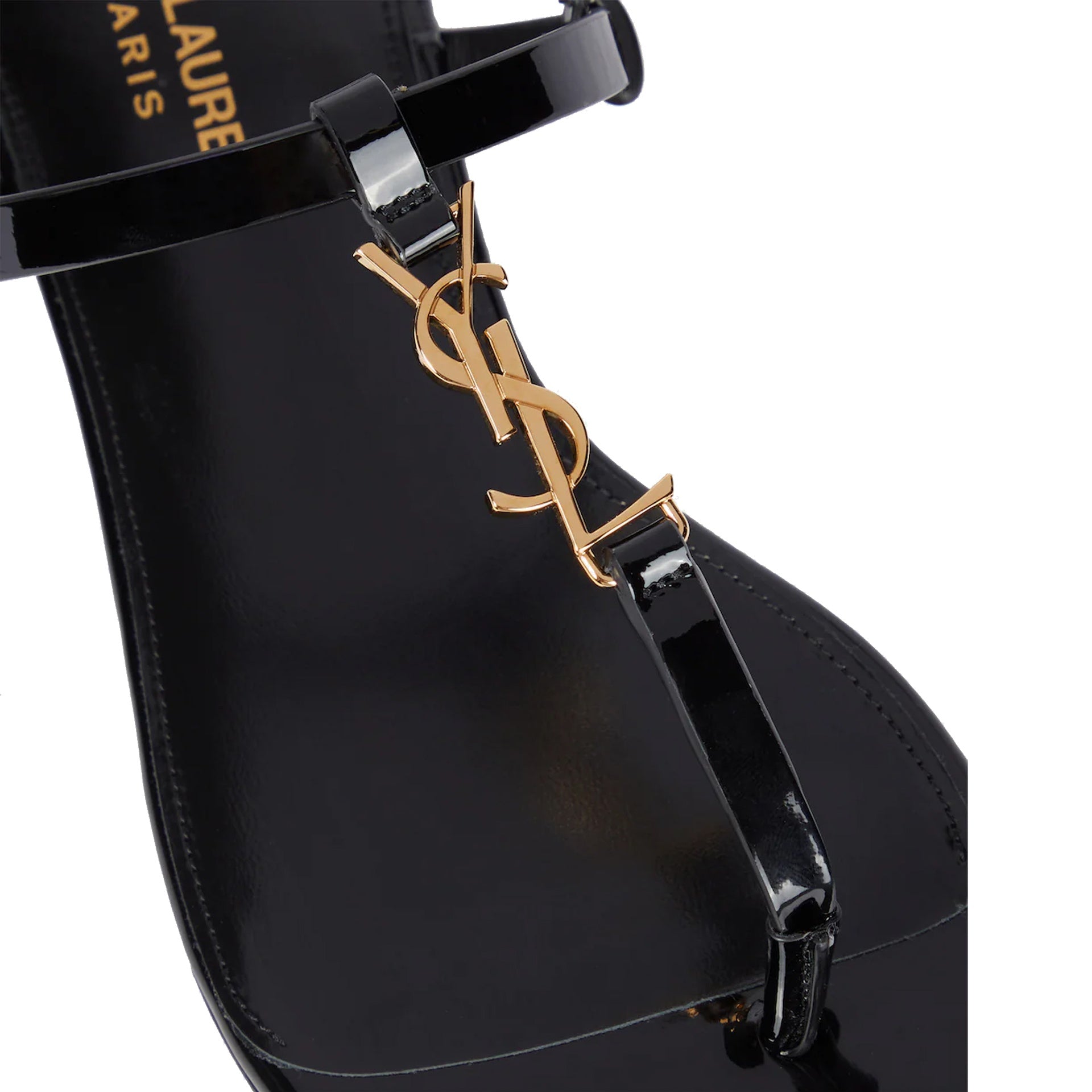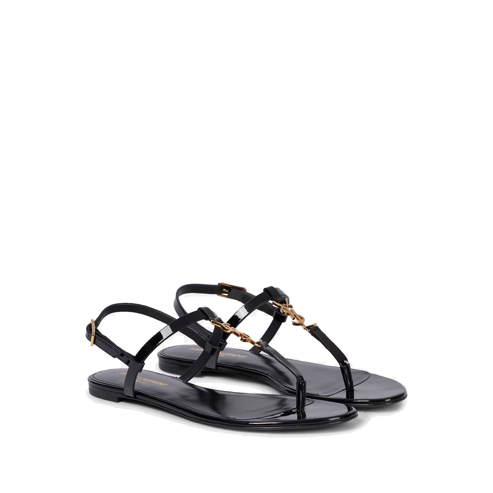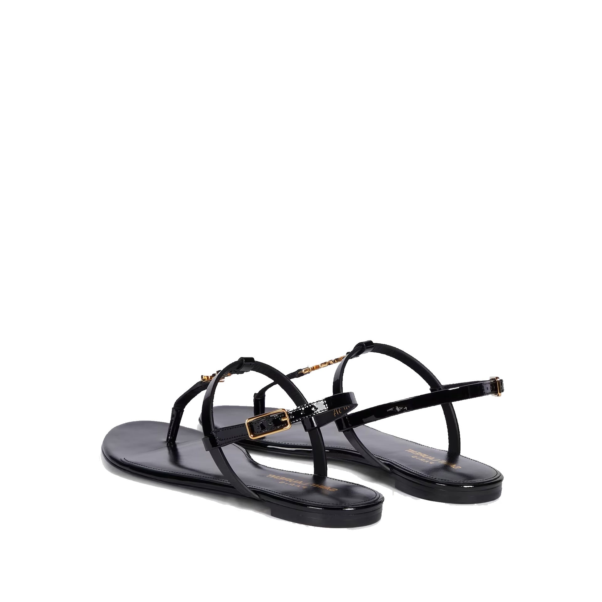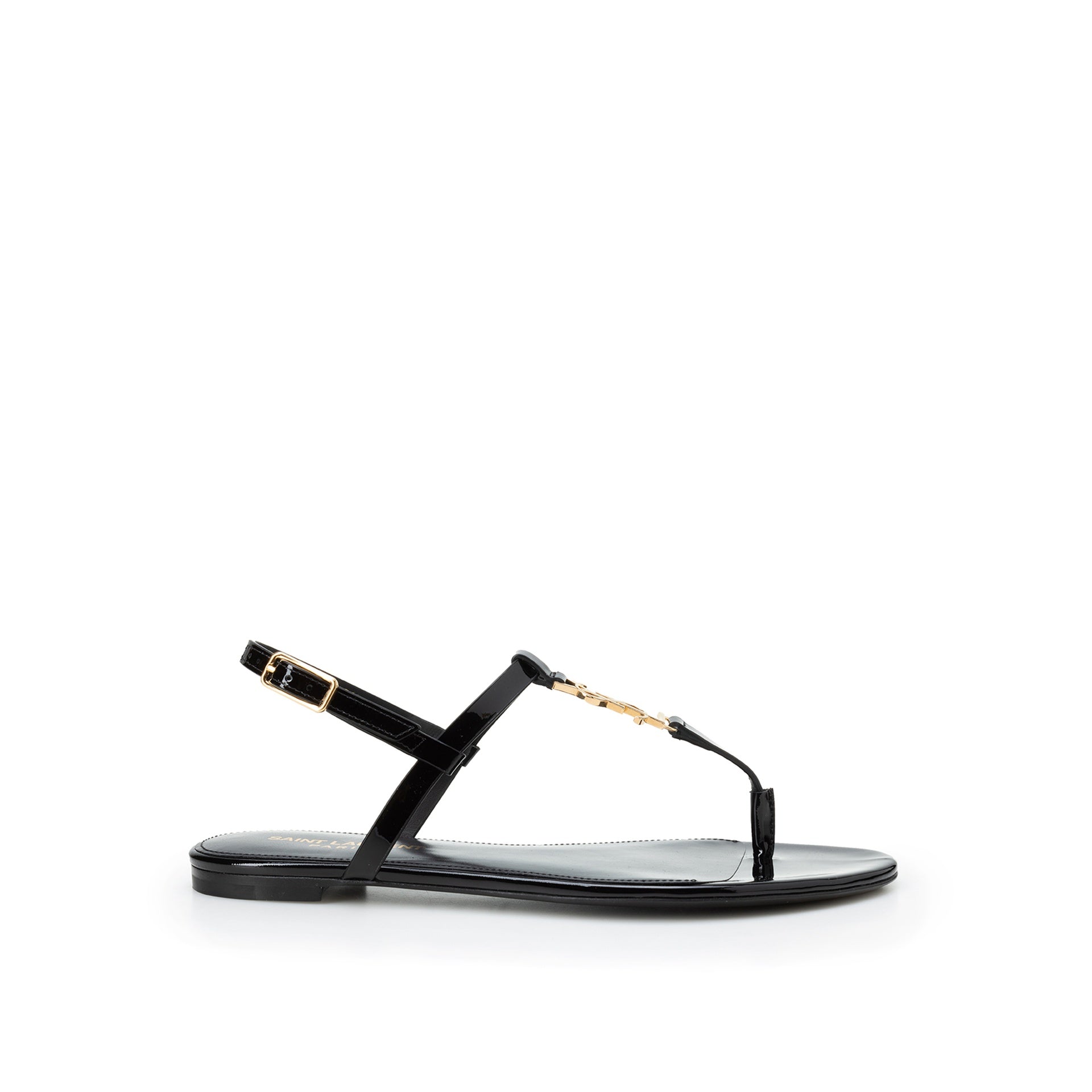 - Composition: 100% calf leather - Inner: Leather - Insole: Leather - Sole: Leather - Round toe - Patent effect - Adjustable buckle closure - Branded insole - Top YSL Gold-tone logo detail - Made in Italy -