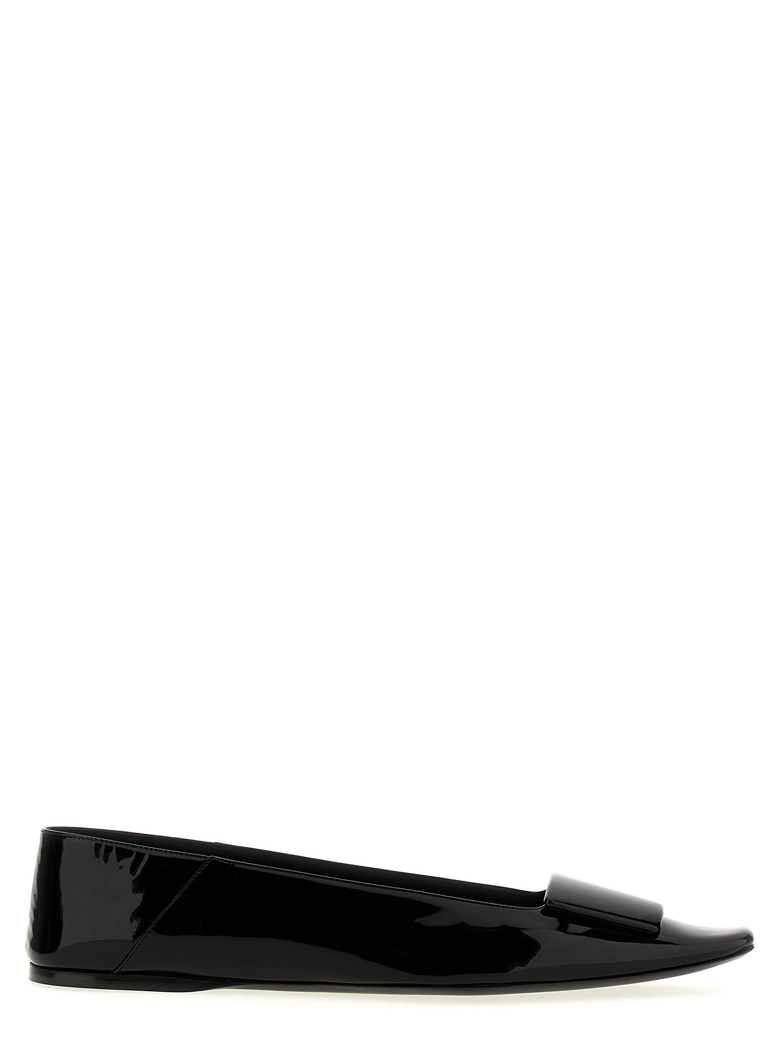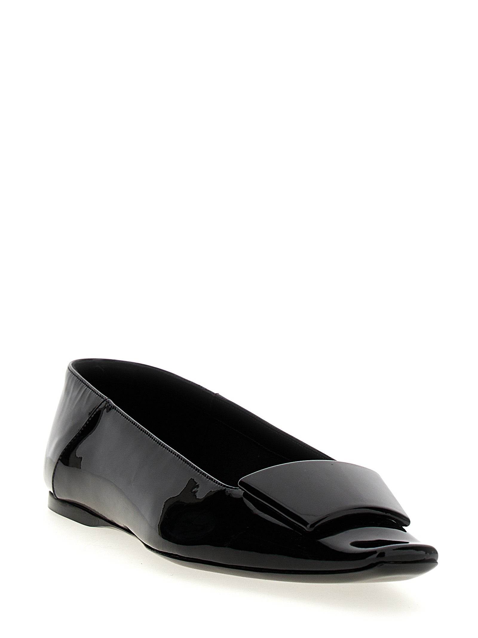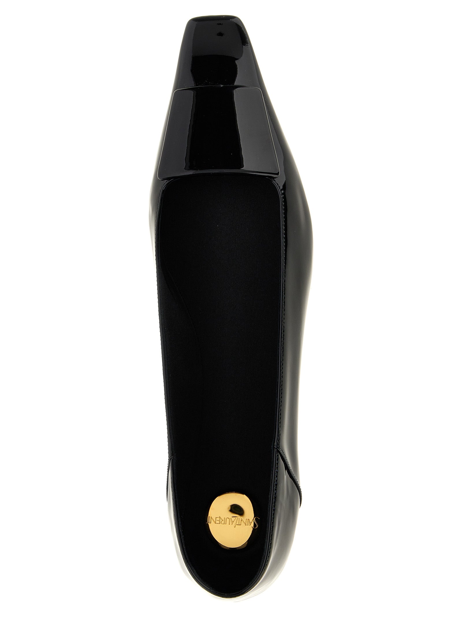 'Poppy' patent leather ballet flats with square toe with front detail application, leather sole, reclining heel.