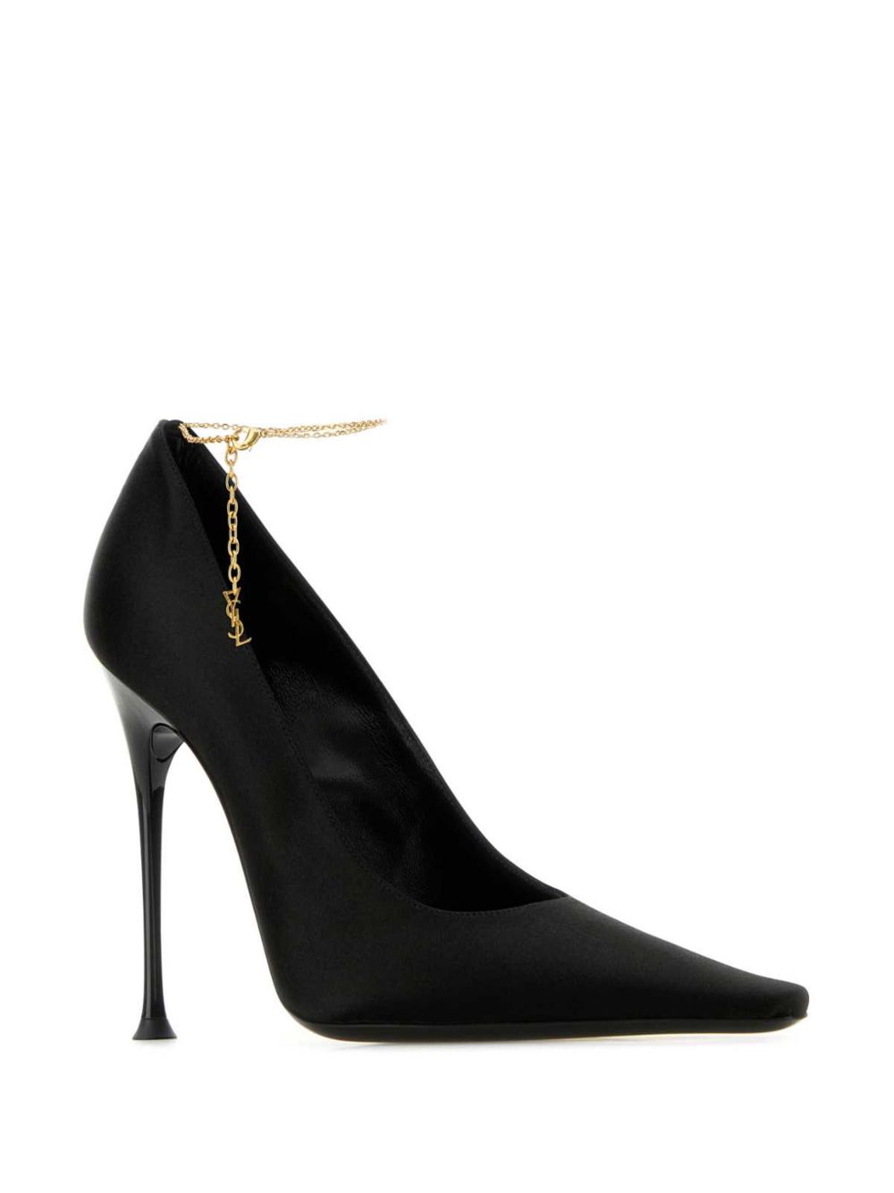 black chain-link detailing pointed toe stiletto heel branded leather insole