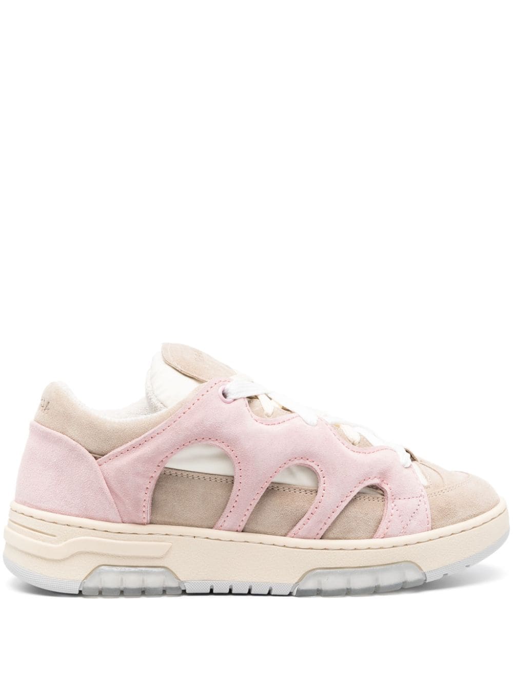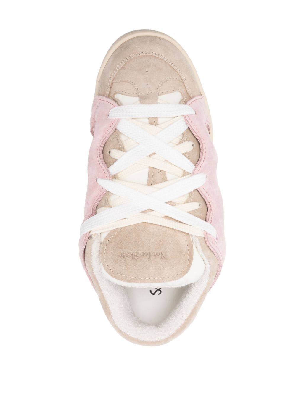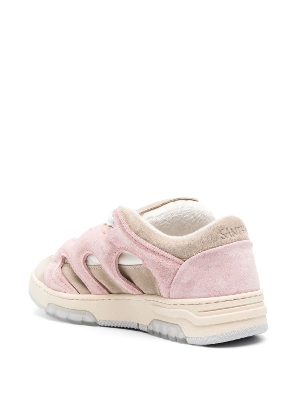 panelled lace-up sneakers from SANTHA featuring light pink, multicolour, calf leather, panelled design, logo-debossed tongue, oversize tongue, round toe, branded insole, front lace-up fastening and chunky rubber sole.