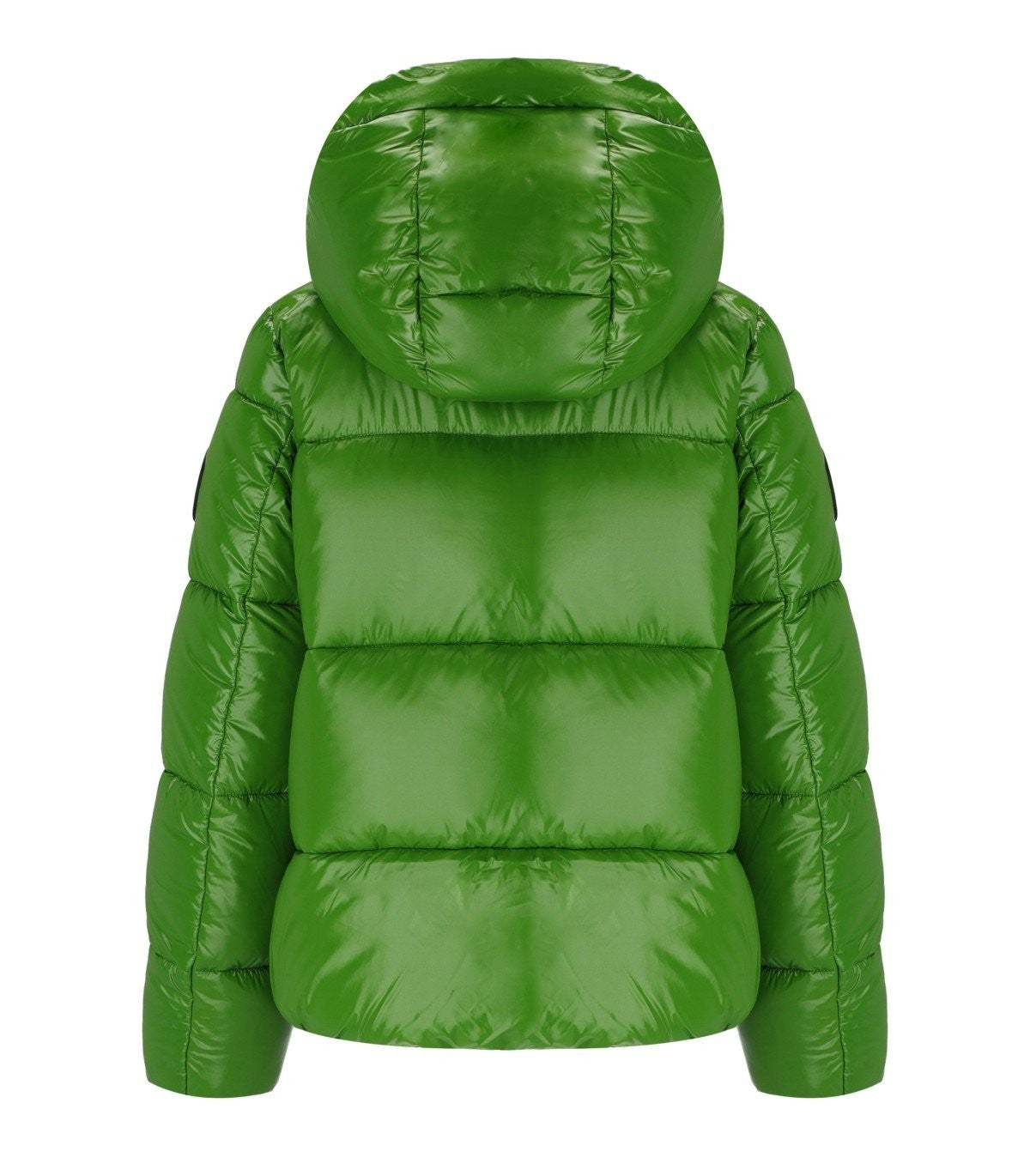 Biddy padded jacket by Save the Duck made of nylon, in a green color shade. Characterized by a front zip closure, it has a hood with drawstring. Equipped with long raglan sleeves and side pockets with buttons. Rubber logo applied on the left sleeve. Oversized fit. Outer composition: 100% nylon. Lining: 100% nylon. Padding: 100% polyester.