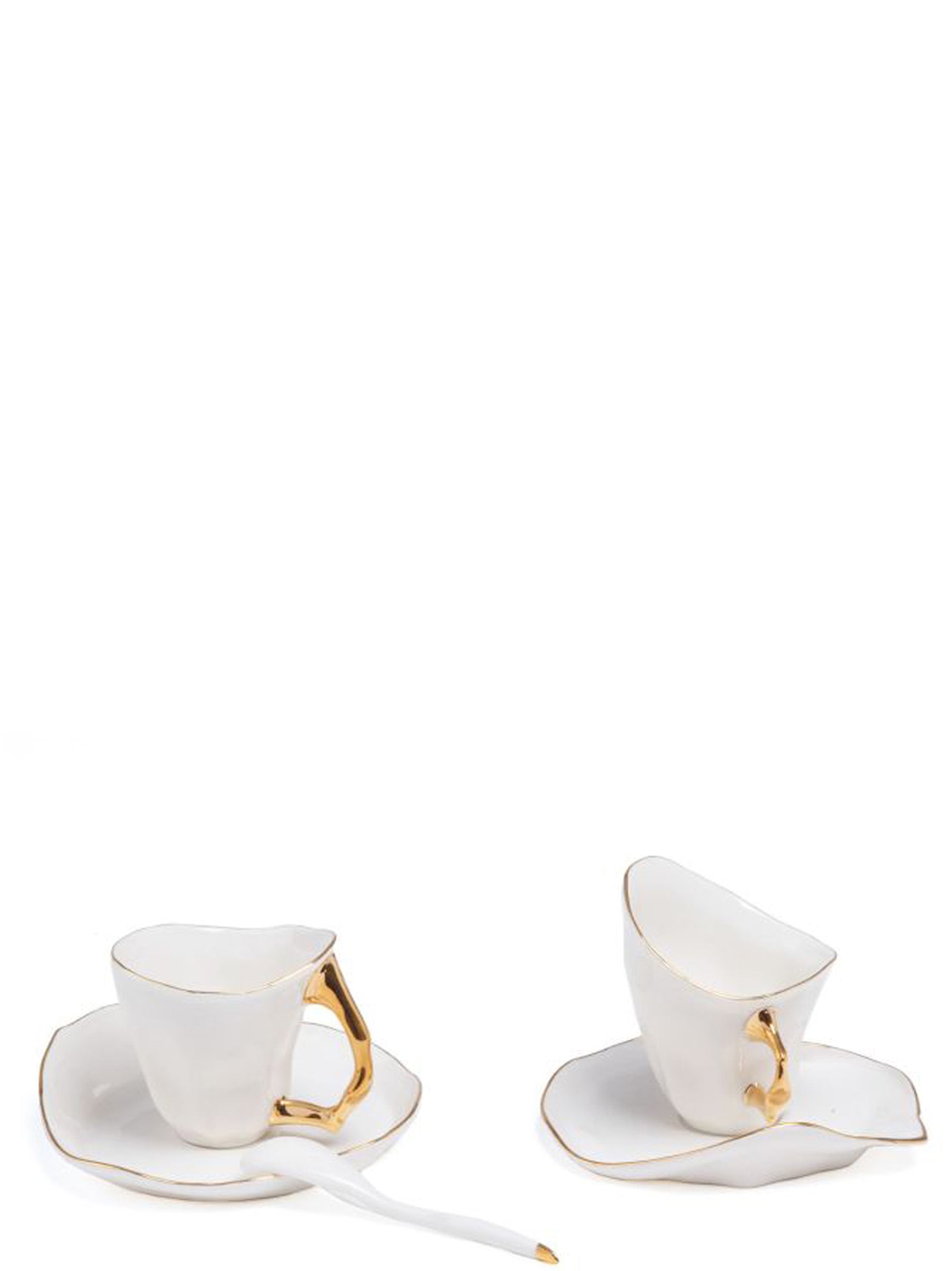 Sletti x Jordanluca porcelain 'Meltdown' set consisting of two porcelain cups, two saucers and two teaspoons. The meltdown collection is inspired by the two British institutions: raves and cups of tea. The rave scene, emerging from the UK in the early 1990’s is known for its illegal parties, wild free festivals and dance music. Tea and the culture of tea time is another bastion of Britishness. We drink tea to celebrate, to mourn the dead and we drink tea for shock and through our various neuroses and emotional meltdowns. There’s no end to the resources of tea for a British person.