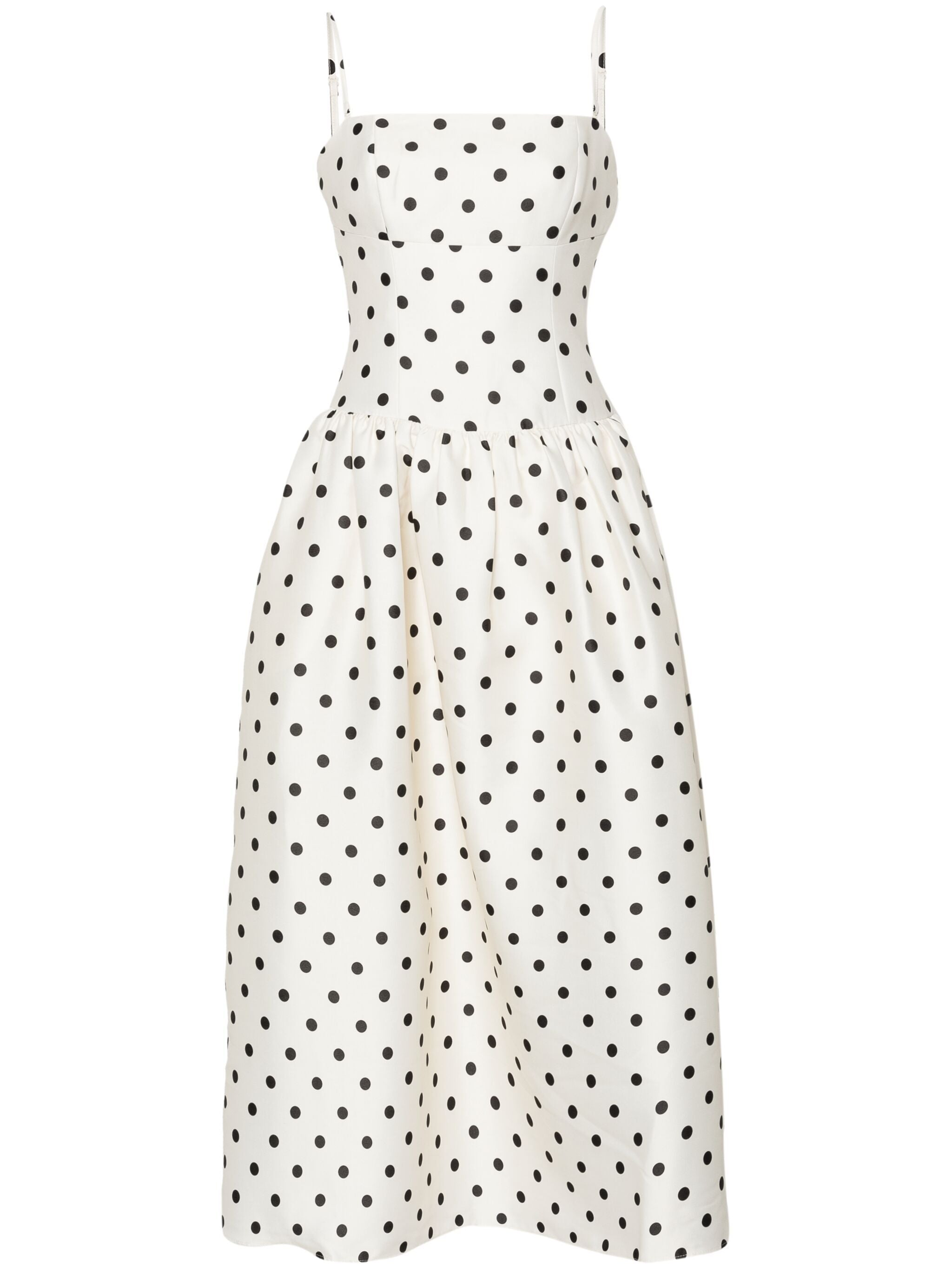 Self Portrait Cream Polka Dot Taffeta Midi Dress