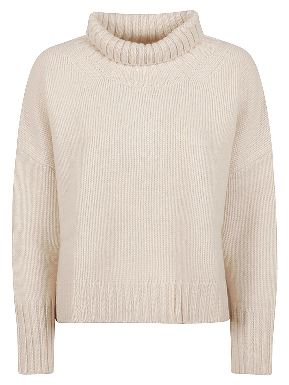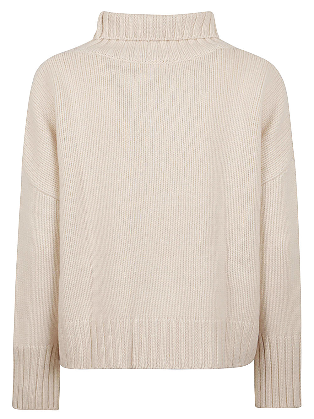 Turtleneck sweater, long sleeves with dropped shoulders, ribbed edges and straight hem.