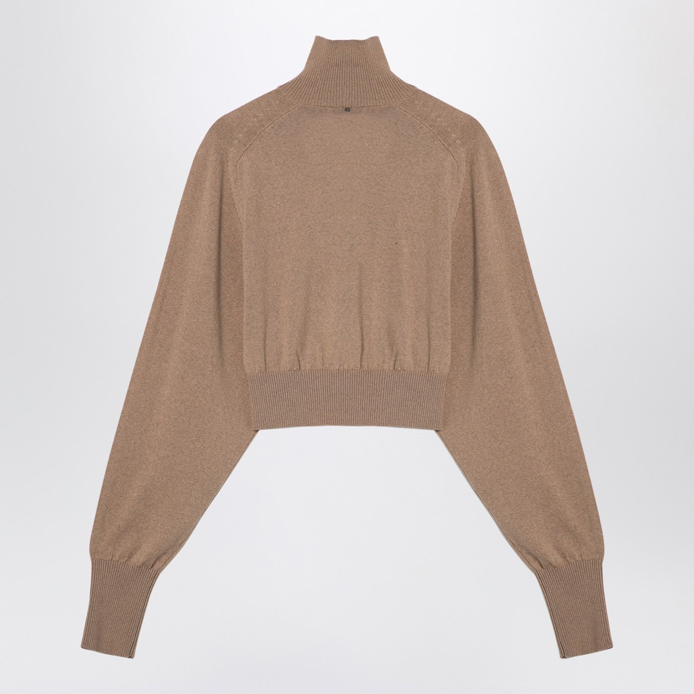Camel-coloured virgin wool cropped sweater from Sportmax featuring a high collar, long sleeves and ribbed edges.