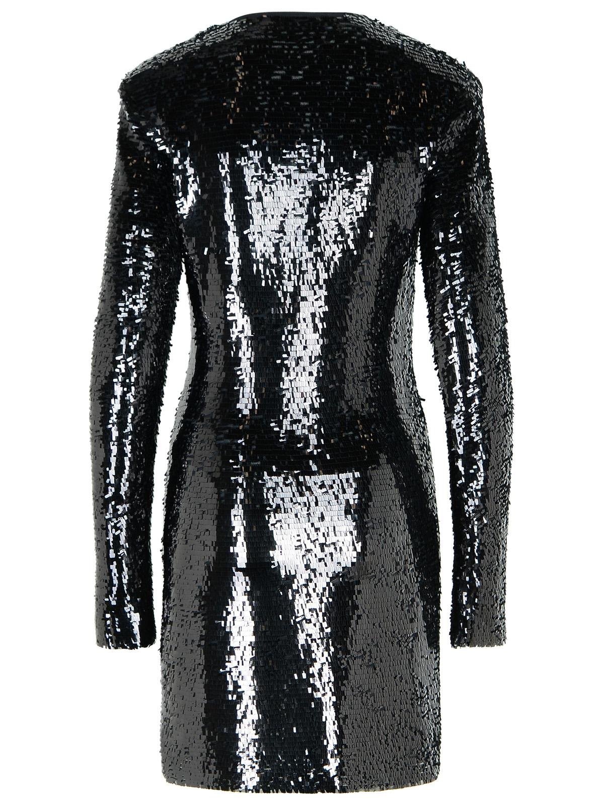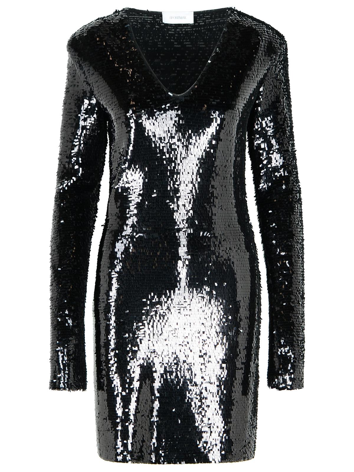 Stretch tulle dress, all-over appliqué shoes, tight fit, V neckline, polyester lining