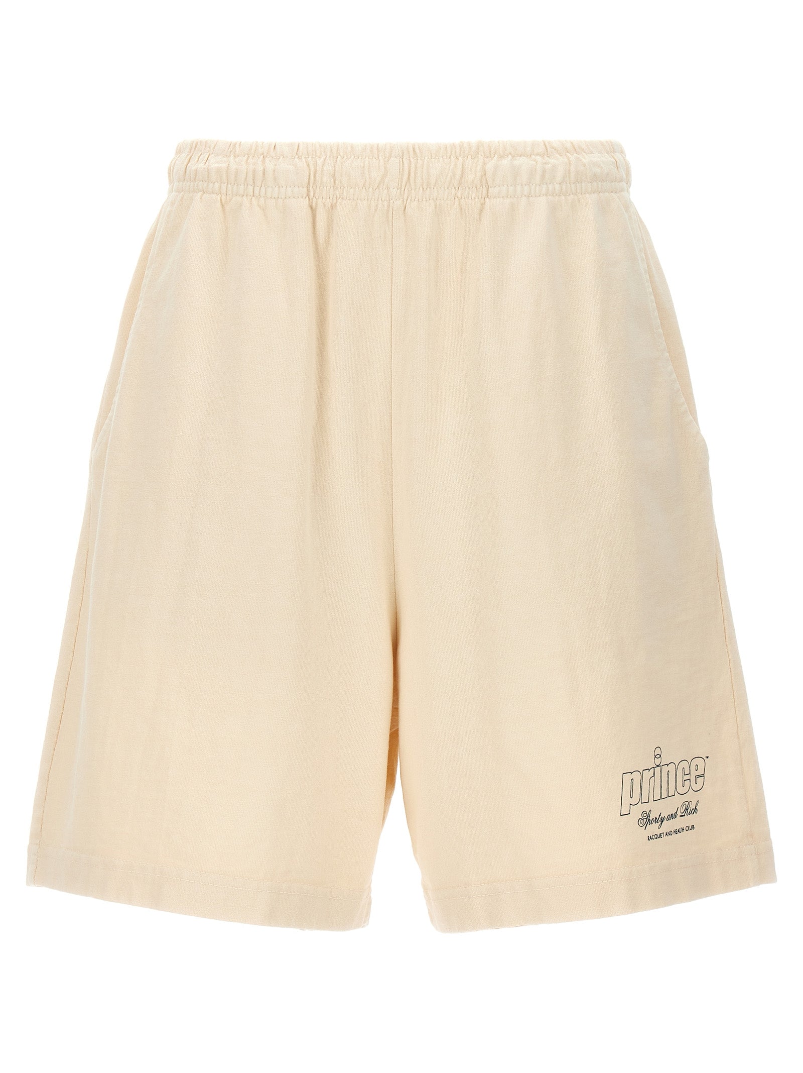 'Prince Health Gym' cotton shorts with front print, drawstring elastic waistband, pockets.