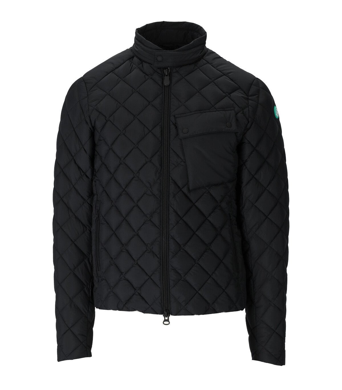 Edna down jacket by Stand Studio made of green nylon with recycled down filling. High collar, maxi pockets on the front and drawstring on the bottom for a better fit. Zip closure and flap with buttons. Oversized fit. Back length 88 cm. This garment fits large, we recommend buying one size less than the usual one. The model is 179 cm tall and wears size M.