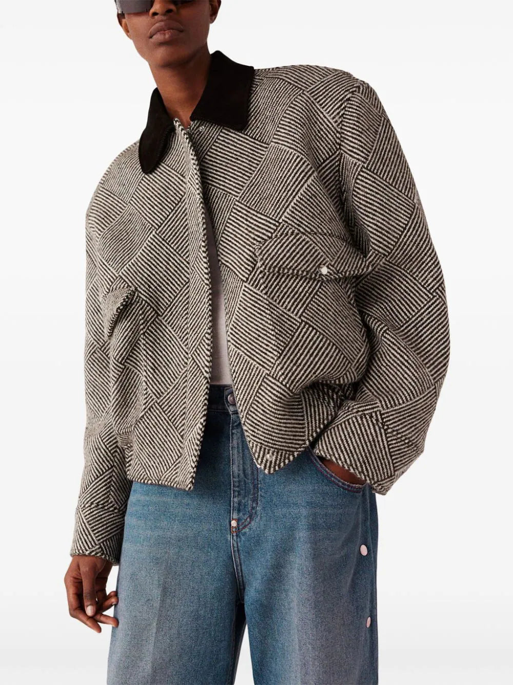 Jacket with ribbed collar