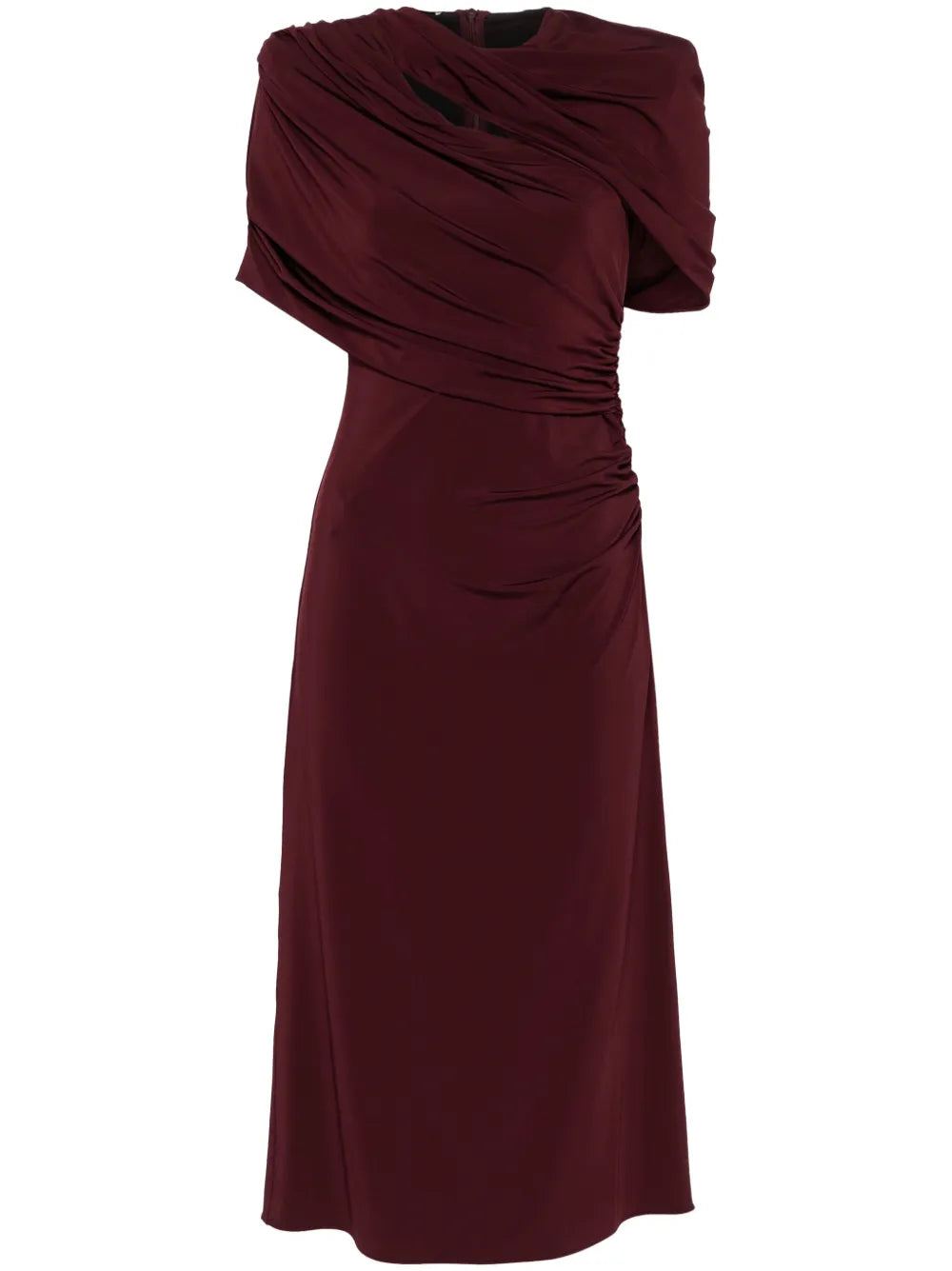 shoulder straps with burgundy zip closure on the back, sleeveless ruched details