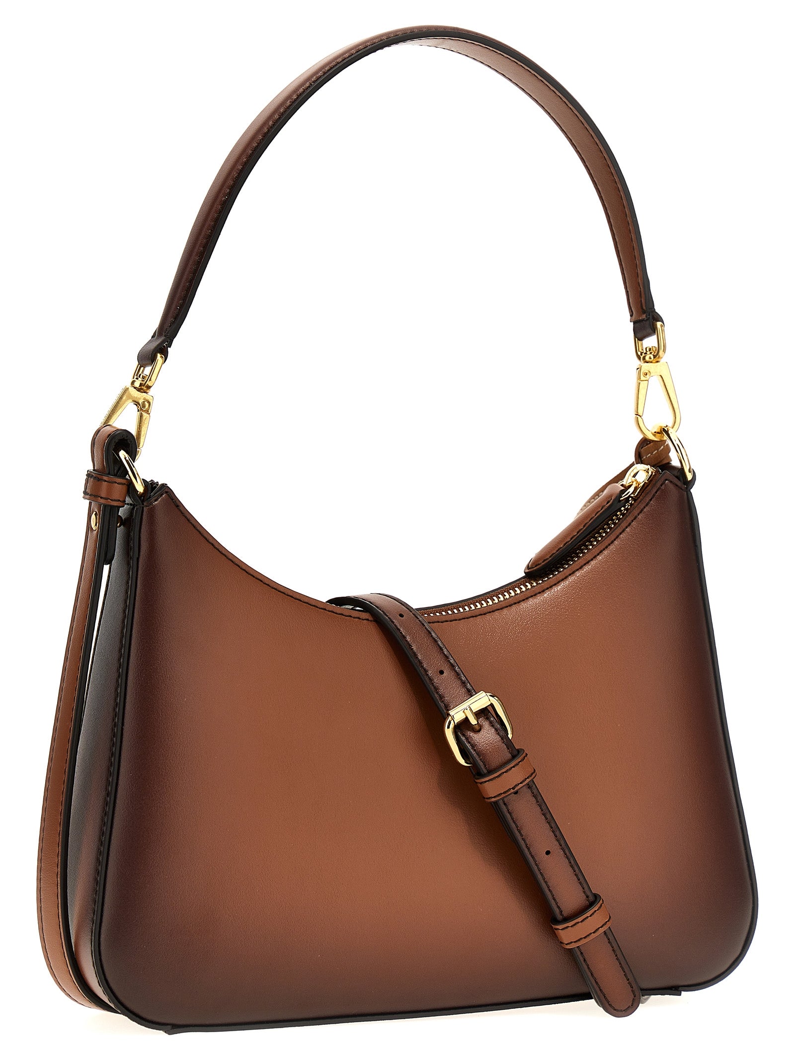 Alter Mat gradient-effect shoulder bag with front perforated logo, zip closure, removable short handle, adjustable and removable shoulder strap, and removable charm.