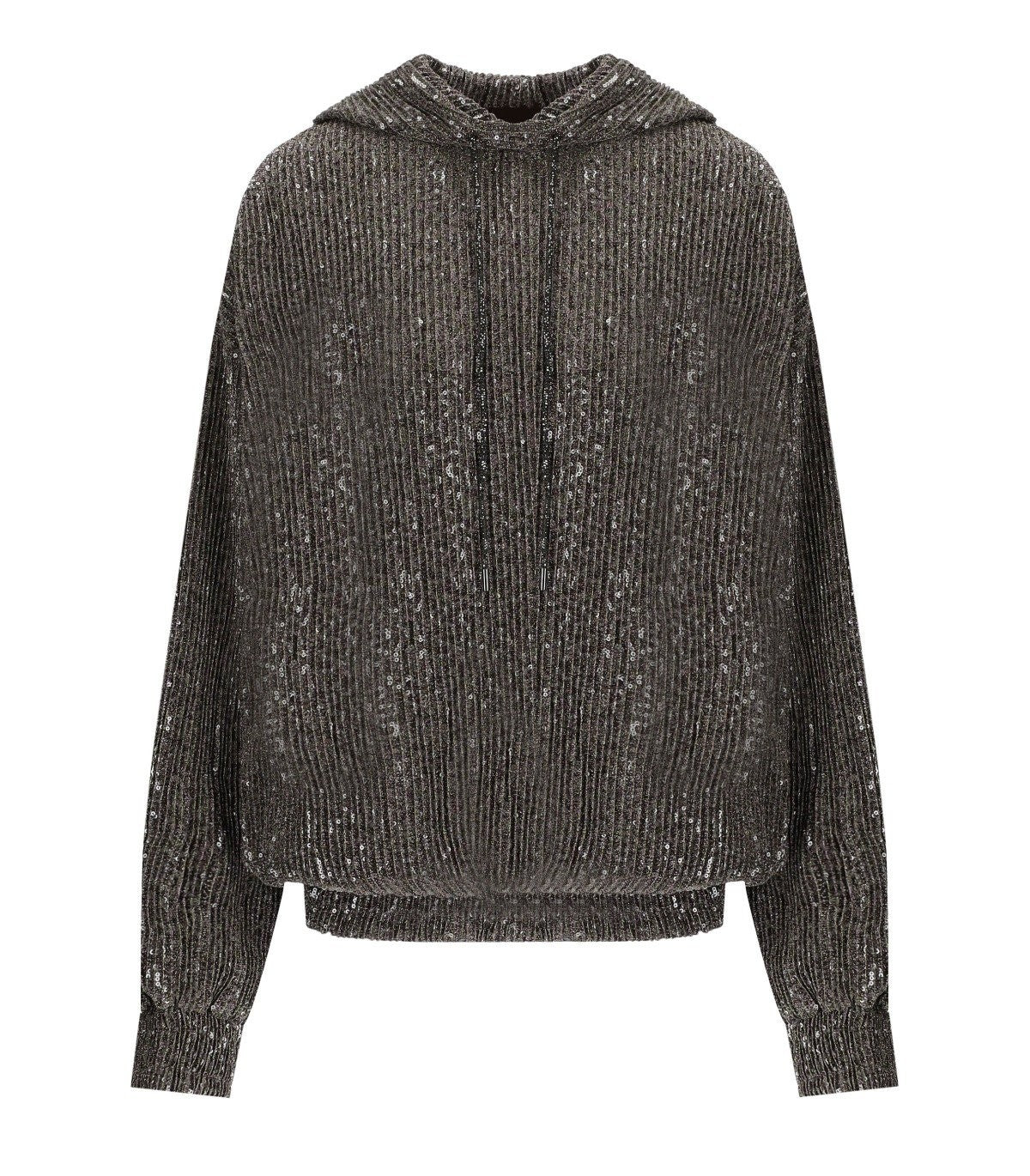 Stine Goya Jesper sweatshirt is made from a blend of polyester and lurex in shades of brown, covered with sequins. It features a drawstring hood, elasticated cuffs and hem. Relaxed fit. The model is 176 cm tall and is wearing a size XS. Composition: 50% polyester, 50% metallic. Lining: 100% polyester.