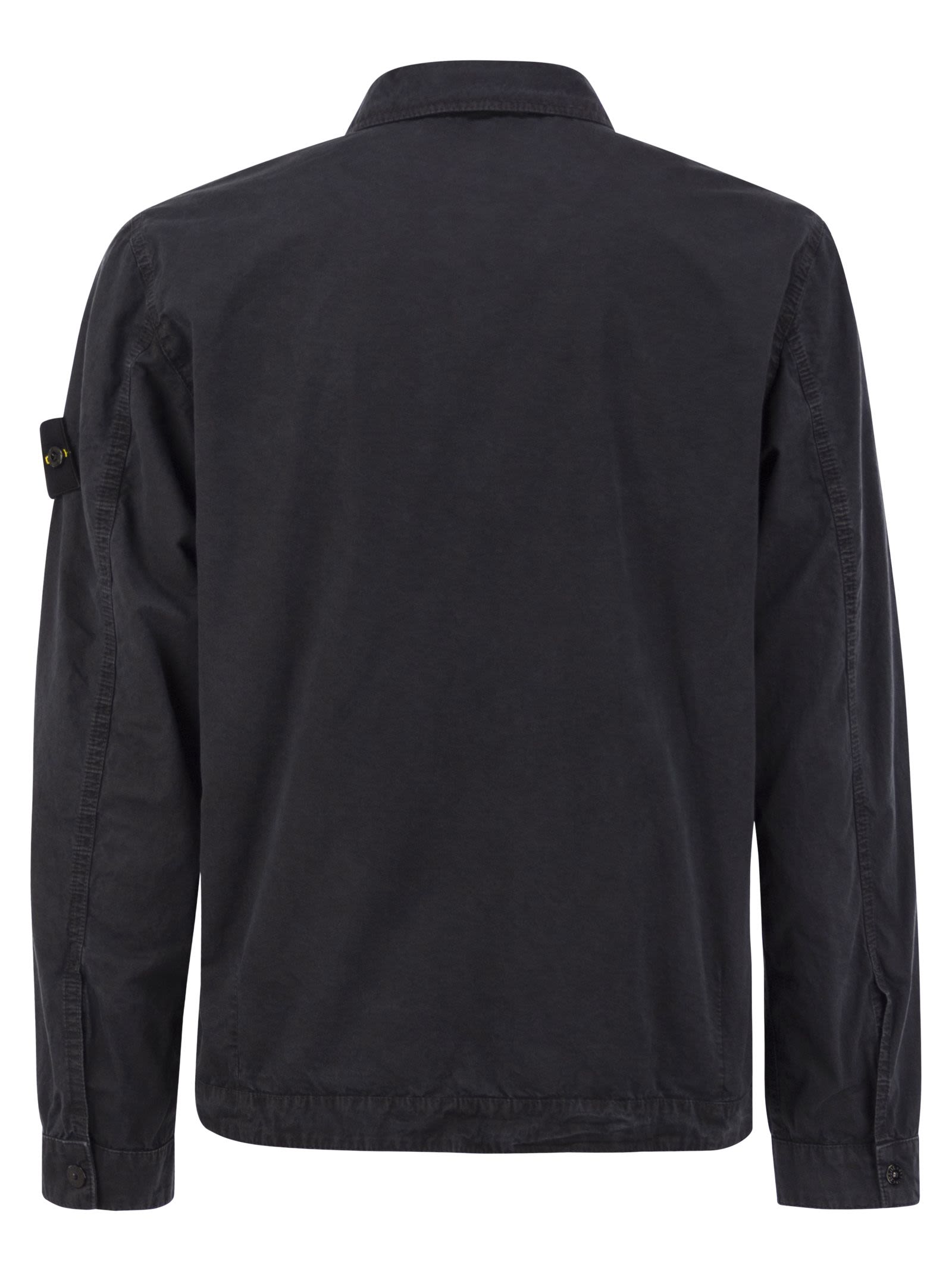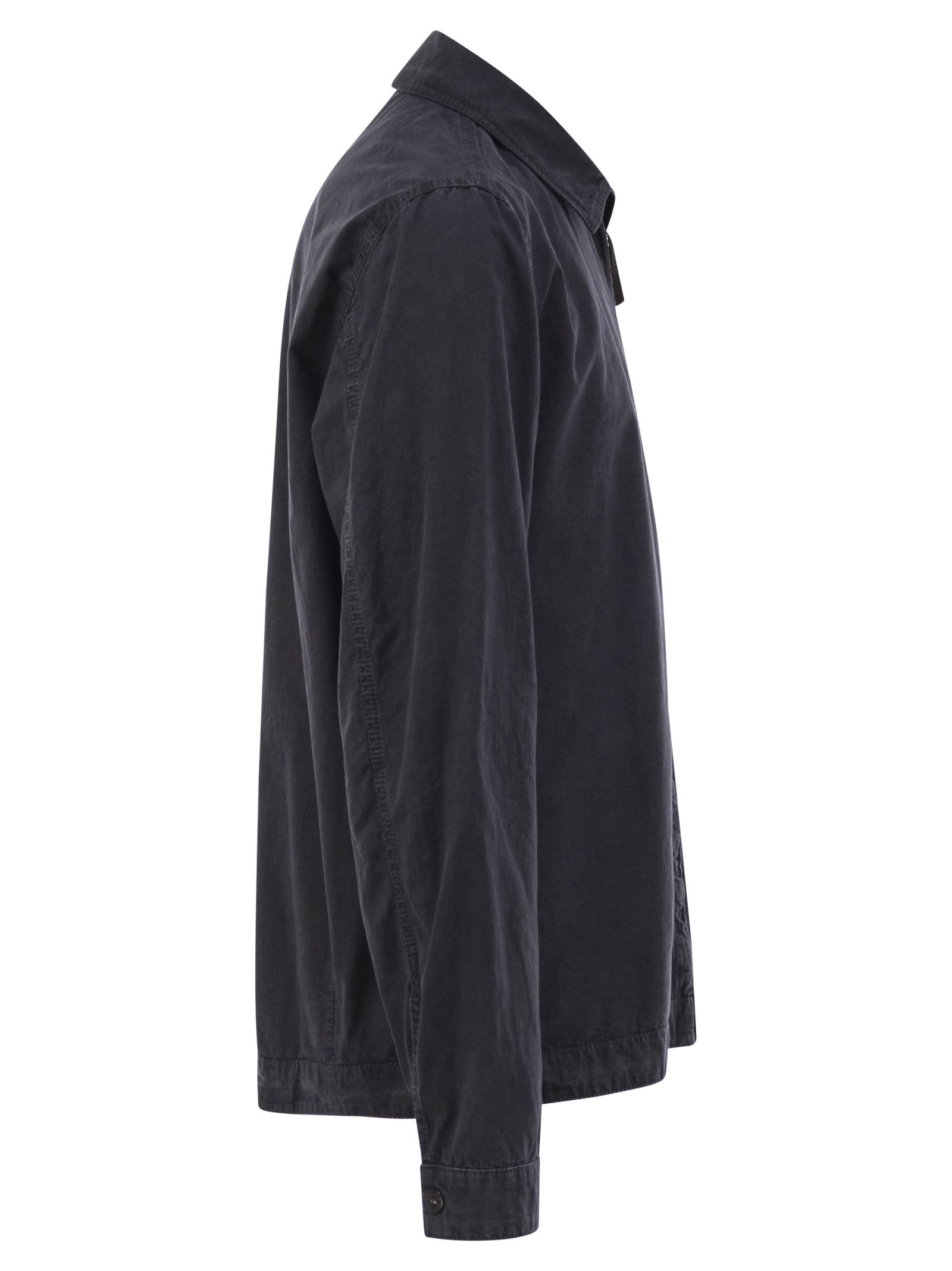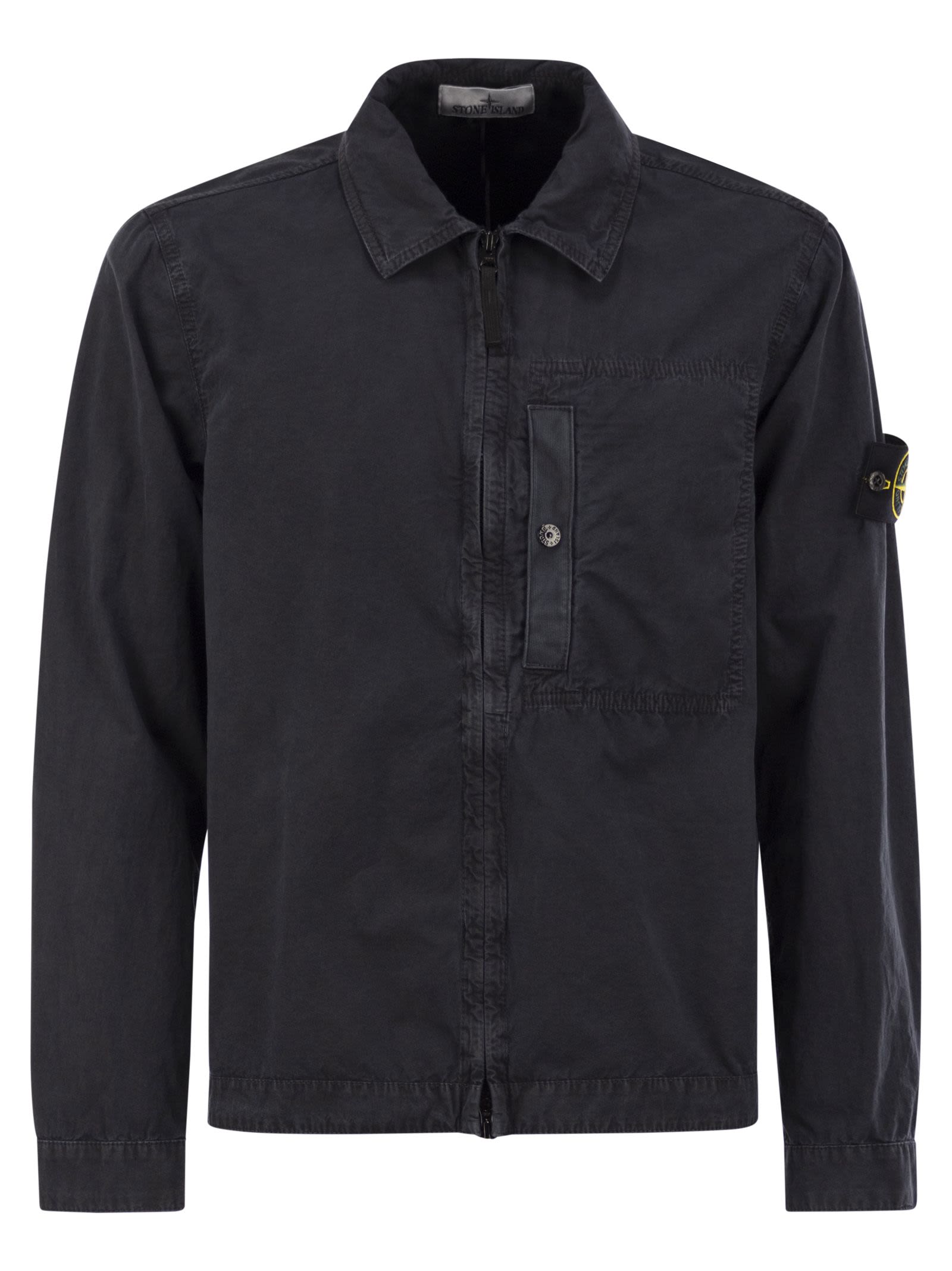 Overshirt in brushed organic cotton canvas. Garment dyed with the 'OLD' treatment, an exclusive dyeing technique and subsequent discoloration on the finished garment that gives it a three-dimensional and slightly lived-in look. - One chest pocket with standing opening and snap button on cotton tape. -Stone Island badge on the left sleeve. - Snap cuffs. - Concealed two-way zip closure. - Regular fit. DESIGNER ID: K1S151200032S00WN V0120