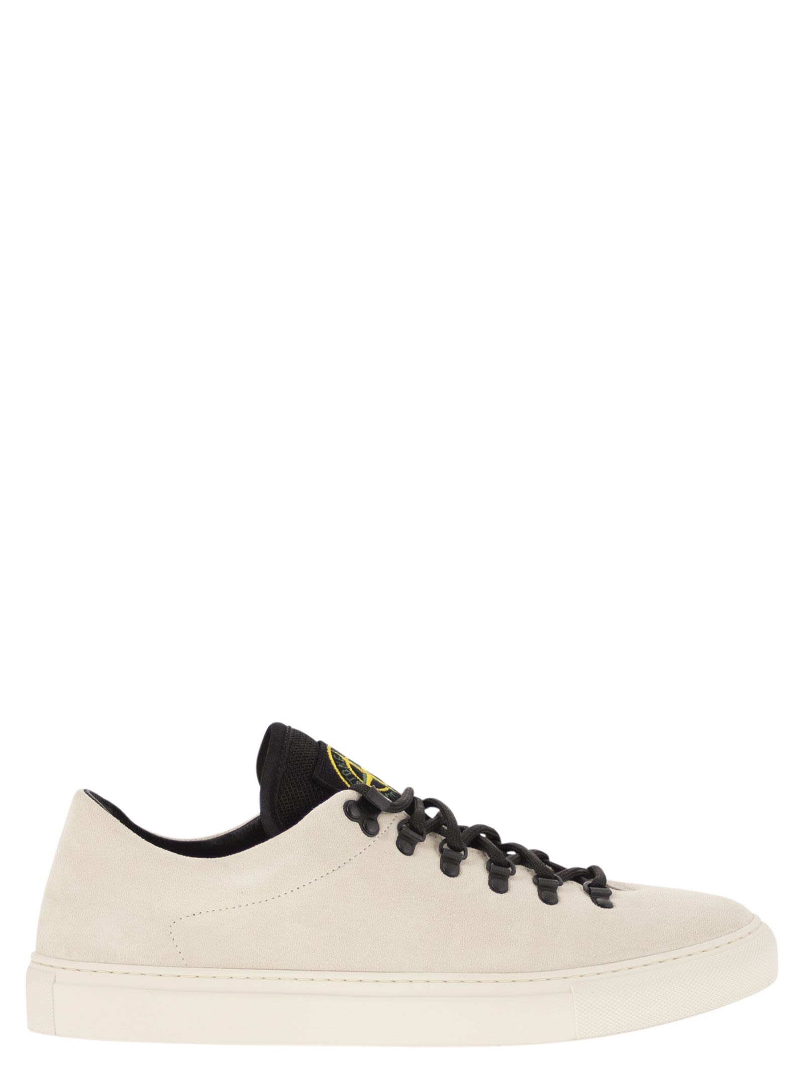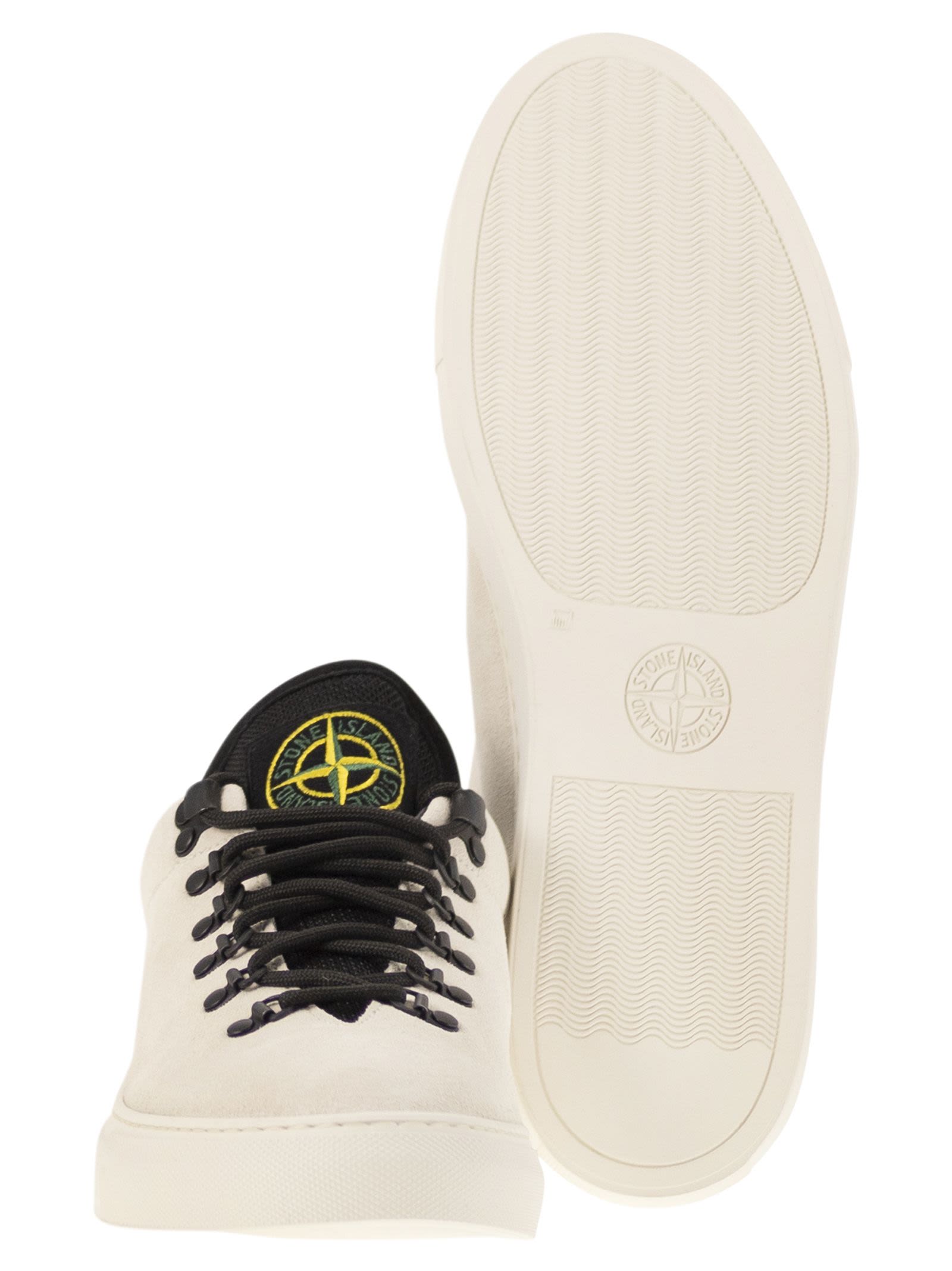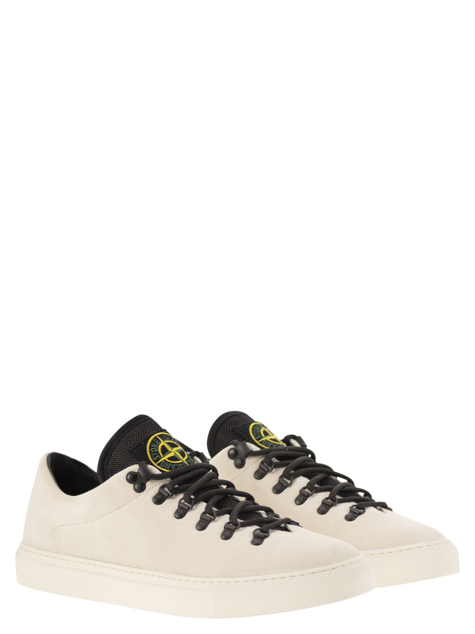 Leather lace-up trainer inspired by a hiking boot, with metal loops and nylon rope lacing, Nylon Metal details and a Stone Island Compass patch. - Metal loops and hooks - Padded tongue - Rubber box sole - Stone Island Compass logo DESIGNER ID: K1SFWS100020S0172 V0095