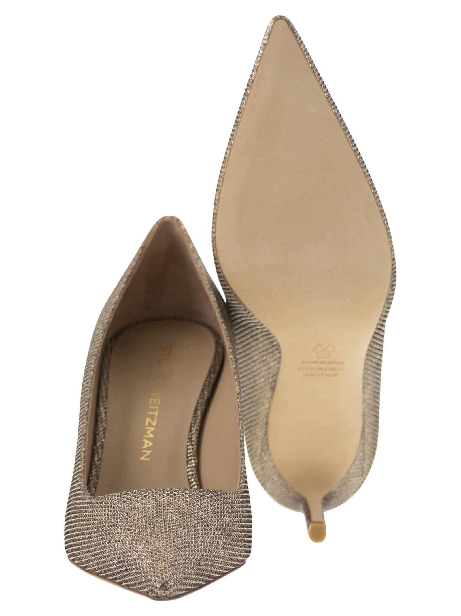 Renew your wardrobe with the STUART 85 DÉCOLLETÉ, the reinterpretation of the classic pointed silhouette in a refined key. Defined by elegant lines, this minimalist thin-soled model is designed to flatter (and sublimate) the figure. A perfect blend of fashion and functionality with an 85 mm stiletto heel, it offers sophistication and all-day comfort. The classic décolleté, optimised. - Décolleté - Pointed toe shape - 85 mm heel - Stiletto heel - Model made by SW artisans in Spain - Part of the STUART Collection DESIGNER ID: SC429 NEN CY4