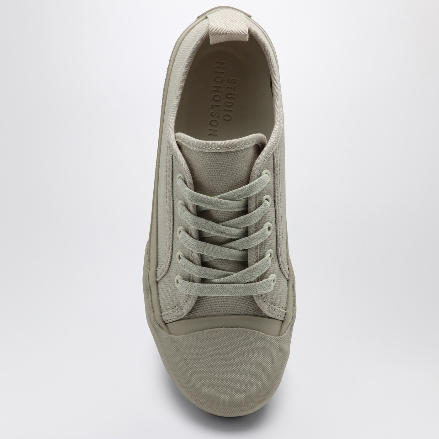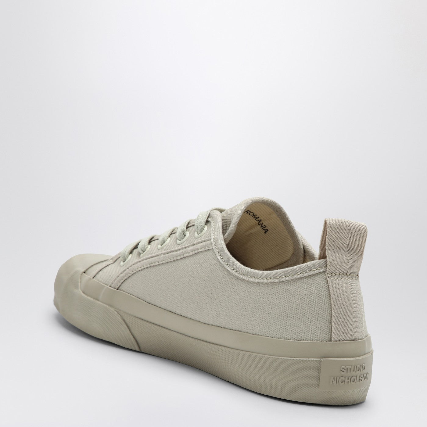 Dove-coloured canvas and vulcanised rubber low top sneaker by Studio Nicholson, features a tonal toe, lace-up fastening and rubber sole with logo on the back.