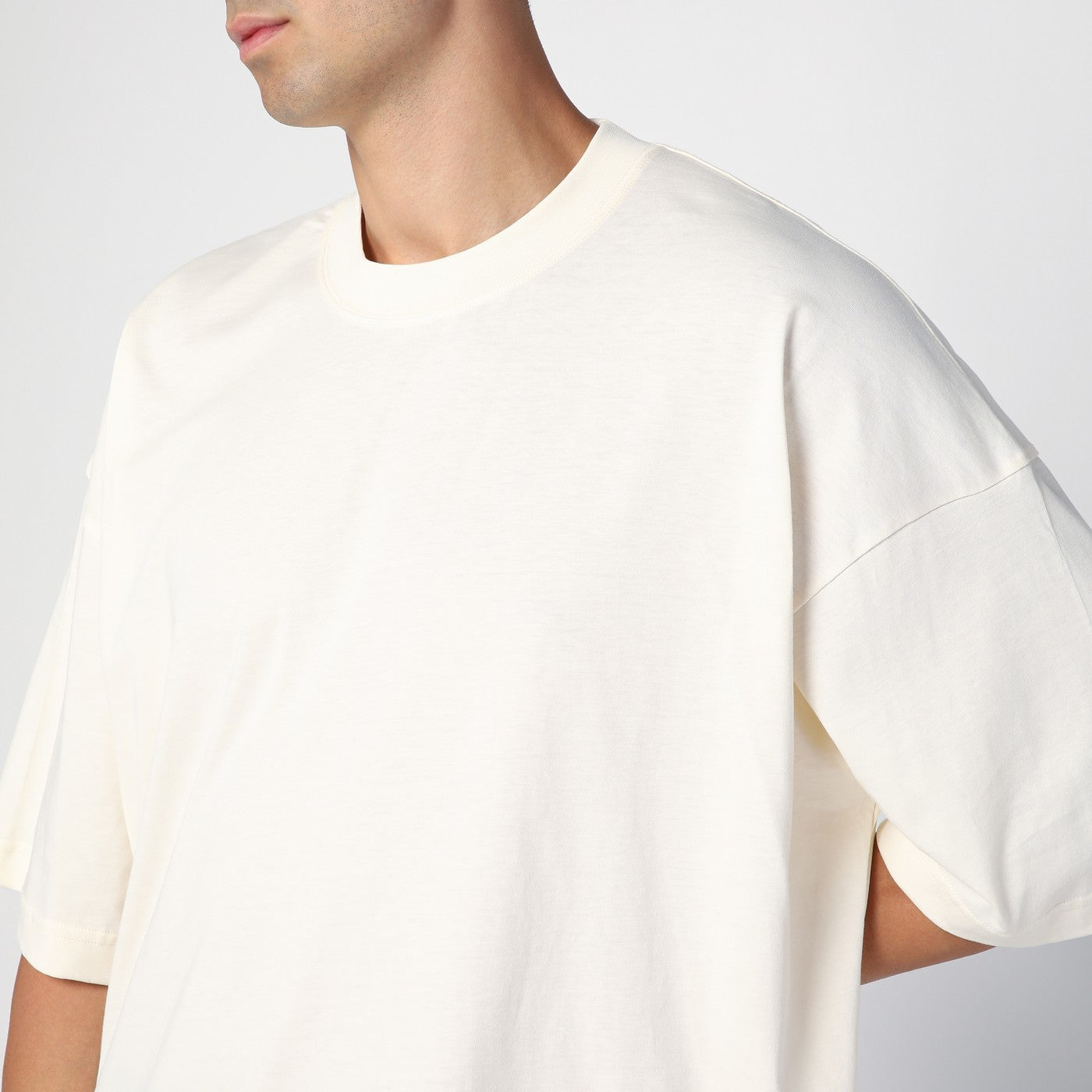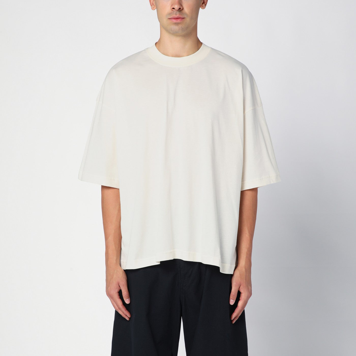 Ivory cotton crew-neck T-shirt by Studio Nicholson, featuring short sleeves, tone-on-tone lettering logo on the back and fit over fit.
