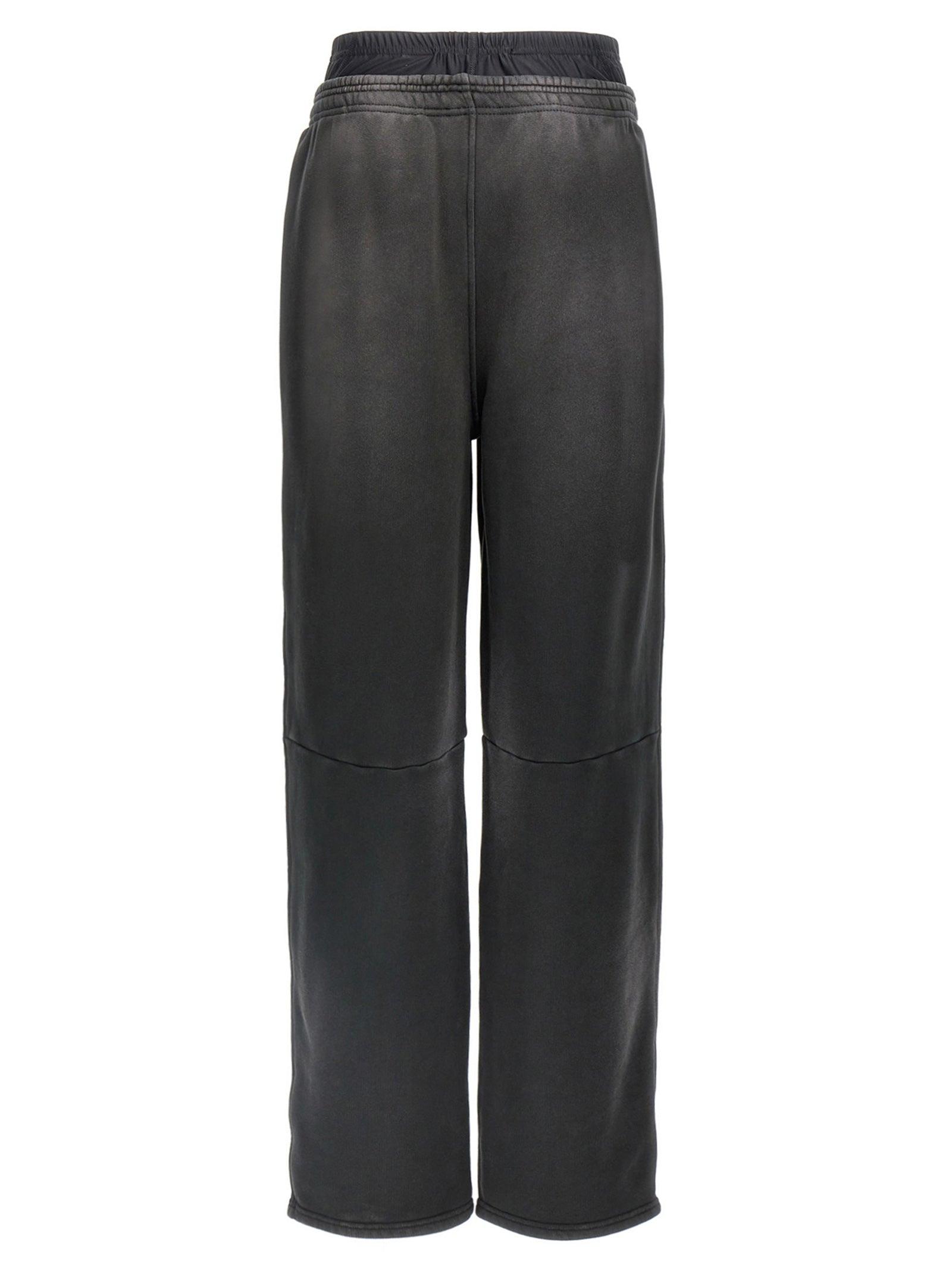 Layered cotton joggers with boxer insert in technical fabric, elastic waistband, pockets, wide straight leg.