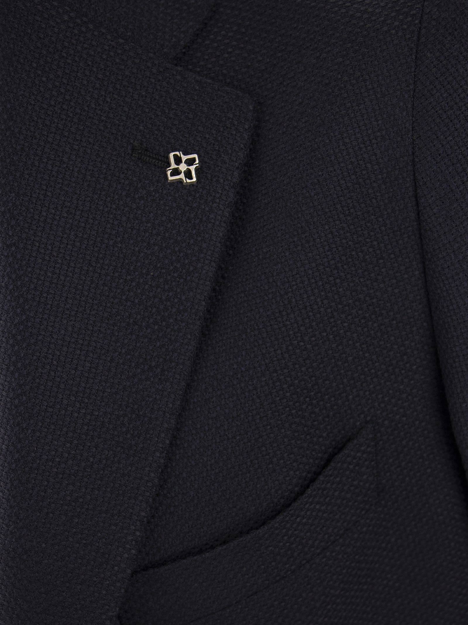 Let yourself be charmed by the new men's jacket from the Tagliatore collection. The fine wool fabric and the slim fit can be combined with chino trousers or with jeans to play down the look. A refined and versatile garment. - Lapel collar - Removable Tagliatore logo pin eyelet - Long sleeves - Buttons at cuffs - Double button closure - Patch pockets on the front - Double back slit DESIGNER ID: 1SMC22K AI 120028 U PER012 B5049